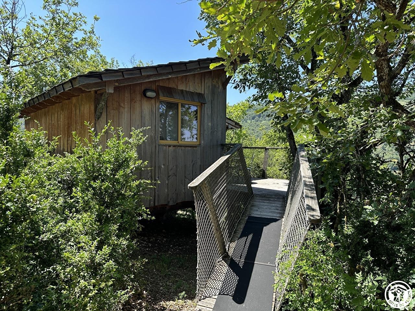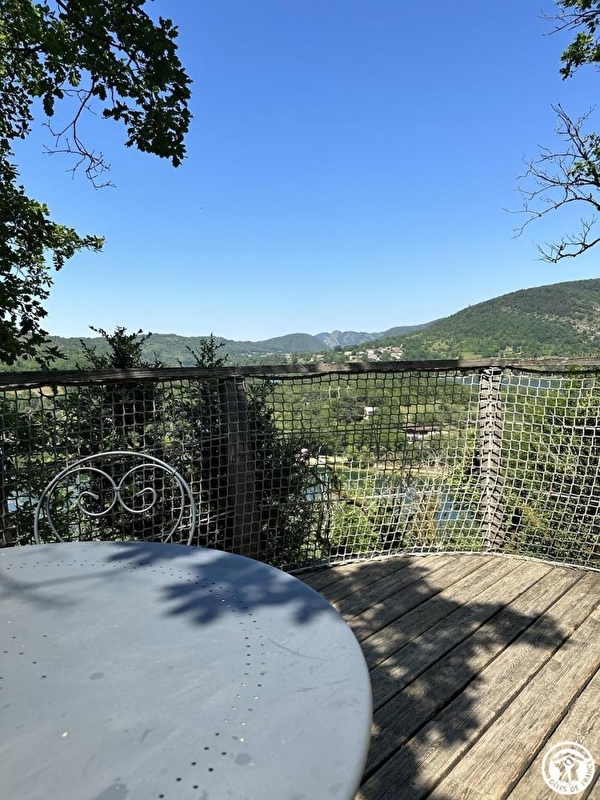 la terrasse, sa vue bien évidemment et sa luminosité, chaque pièce est dotée d'une fenêtre. La Sapinière fait partie d'un site " nature " comprenant au total 7 cabanes et lodges complètement intégrées dans cette forêt de buis, nichée sur les hauteurs de Serrières sur Ain, en aplomb de la rivière d'Ain. Chaque cabane à sa propre identité et est construite sur piloti à 2 mètres du sol, les accès et terrasse sont entièrement sécurisés. Site d'exception, dans les gorges de l'Ain, permettant la pratique du canoë, aviron ou simplement baignade. En hauteur sur les falaises, possibilité de randonner, avec GR et PR . Avec un peu de chance, de la patience, et des levers matinaux, vous pourrez peut être observer les chamois qui viennent parfois pâturer sur les pelouses sèches.