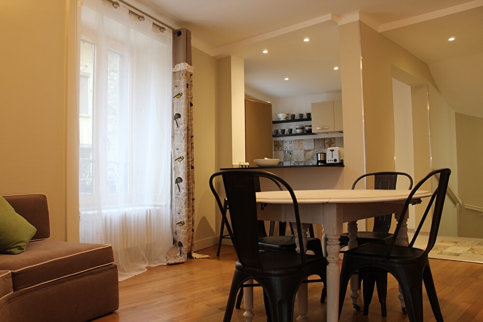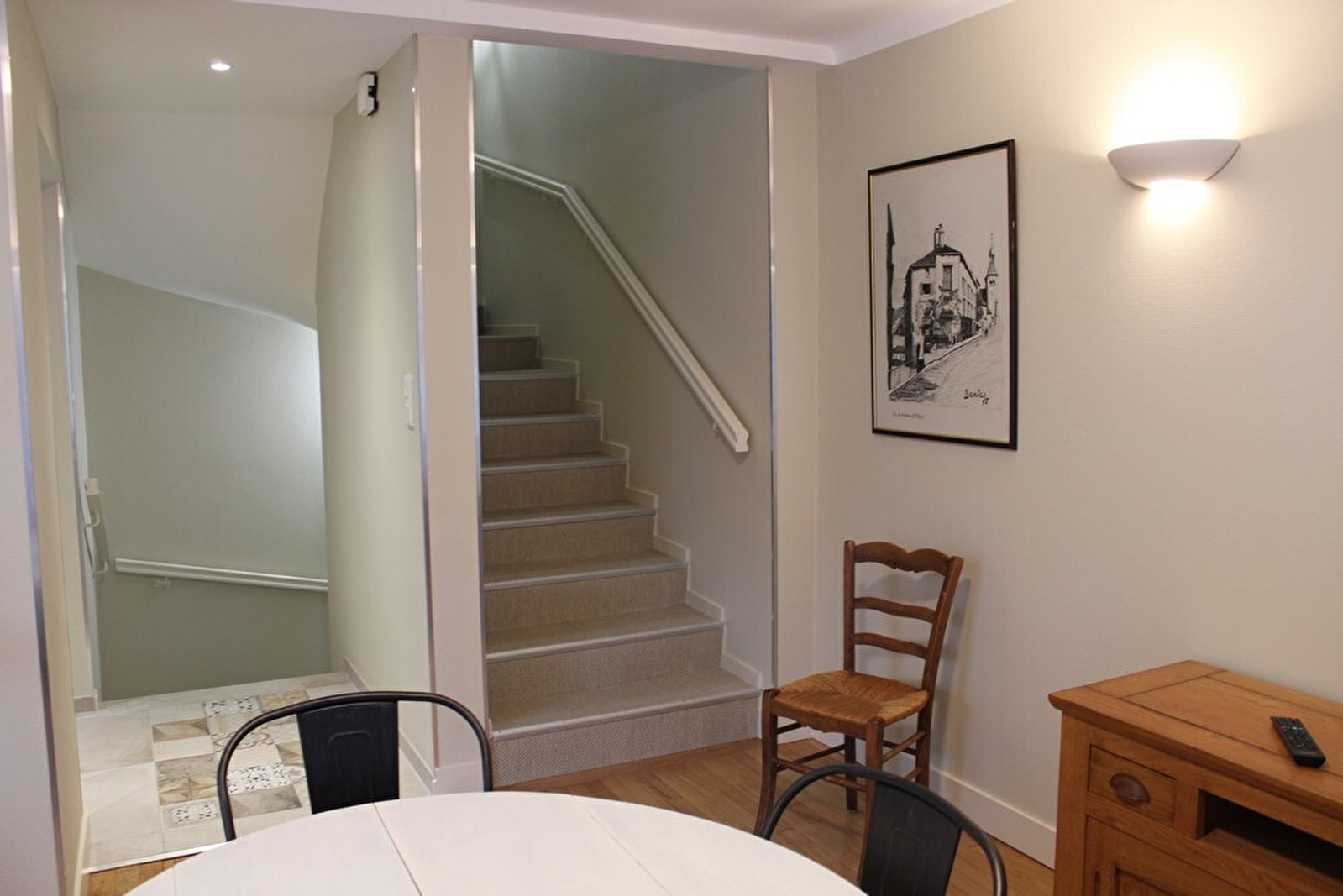En plein centre de la ville thermale de Salins les Bains, au calme avec une vue dégagée sur la rivière, à deux pas des Thermes, très beau triplex tout confort entièrement rénové avec goût, modulable de 2 à 5 personnes. Au rez-de-chaussée, hall d'entrée, chaufferie (machine à laver) et wc indépendants. Au premier étage, belle cuisine équipée ouverte sur le séjour, canapé, TV écran plat. Au 2eme étage : une chambre avec un lit de 160x200cm et une salle d'eau avec douche à l'italienne et wc. Garage privatif fermé à disposition. N'attendez plus pour réserver votre séjour au gîte de la Tour Cicon ! Pour votre plus grand confort, les lits seront faits à votre arrivée. Tarif spécial curistes : 750 € (1 chambre) pour les 3 semaines consécutives en basse saison, et en juillet août 1100€ (1 chambre) les 3 semaines consécutives.