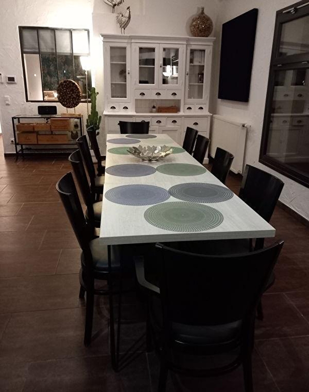 A la limite du Jura et de la Saône et Loire, ce gîte se situe dans une ancienne grange datant de 1850. Entièrement rénovée par les propriétaires pour vous apporter tout le confort moderne, il se compose au rez de chaussée de 2 chambres doubles (lit 140*200) avec télévision connectée, d'une salle d'eau avec douche, d'un WC indépendant, d'une cuisine ouverte entièrement équipée et d'une pièce de vie de plus de 50 m2 avec coin salon aménagé avec 2 canapés convertibles (possibilité d'accueillir 4 personnes sur demande et avec supplément) et TV connectée et d'un coin salle à manger. Pour les moments de détente un baby-foot, un espace bibliothèque, des jeux de société et d'extérieur sont mis à disposition La pièce de vie est entièrement ouverte sur l'arrière du bâtiment sans vis à vis avec accès direct à une terrasse ombragée de 45 m2 L'étage est composé de 2 chambres avec chacune 1 lit double (140*190) avec leur salle de bain privative, espace ouvert ou semi-ouvert (1 baignoire ou 1 douche), télévision connectée. Pour votre plus grand confort, les lits seront faits à votre arrivée, les linges de toilettes sont fournis et le ménage est inclus. Le parking est privé et permet les stationnements longs, Nous acceptons les camping car et nous disposons également d'un espace sécurisé pour les vélos et les motos. Le gîte est situé à mi-chemin de Lons le Saunier(Musée, Parc de Loisirs, Espace thermal, Casino jeux) et de Louhans qui possède l'un des plus beau marché de France. Nous sommes à 5 minutes de la sortie N°8 de L'A39, à 1h de Beaune, Dijon et Besançon, à 1h15 de Lyon et 1h30 de Genève. Les premières pistes de ski sont à 45 minutes et la région des lacs à 30 minutes. La gîte est à 200 mètres de la "Voie Bressanne" entièrement piétonne qui permet de relier Lons le Saunier à Châlon sur Saône.