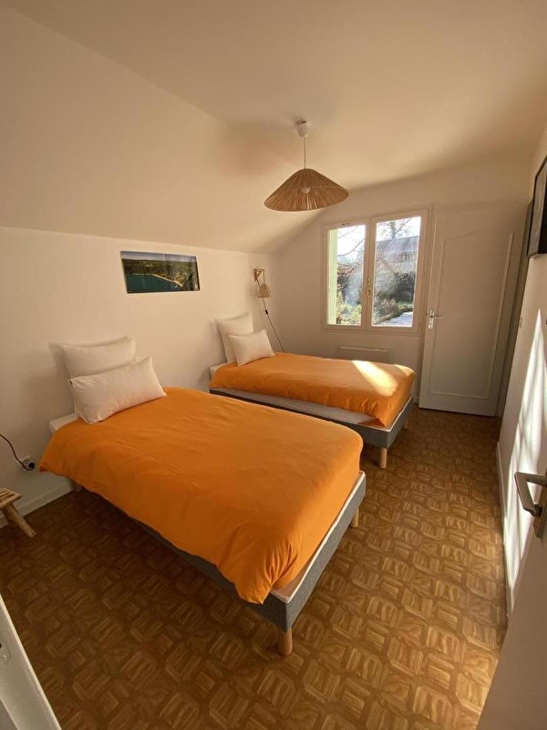 Envie de partager un agréable moment en famille ou entre amis le temps d'un week-end ou plus? Alors ce gîte est idéal. Il se compose d'une pièce de vie avec salle à manger et coin salon avec TV, d'une cuisine toute équipée et de 3 chambres dont 2 avec des lits queen size et 2 avec des lits jumeaux . Une salle d'eau avec cabine de douche et une salle de bain avec petite baignoire, WC indépendant. Au sou-sol, une 3ème salle d'eau d'appoint avec douche et WC. Côté extérieur, vous pourrez profiter d'une terrasse de 45 m² aménagée avec salon de jardin, barbecue et transats. Une piscine hors-sol vous permettra de vous rafraichir à la belle saison. Accès aux prestations payantes de la chambre d'hôte située juste à côté : table de massage, fauteuil relaxant et lyashi dôme, dégustation de vins du Jura dans la cave voutée des propriétaires (mini 4 personnes). Services : Pack « Starter 1er P'tit déj » et repas « Les pieds sous la table » Retrouvez dans notre pack gourmand des confitures, du miel, du beurre, du fromage, du jus de pomme et du pain de nos producteurs locaux pour commencer votre séjour avec le goût du Jura! 50 €/le 1er pack – réassort sur demande. Envie de profiter de vos vacances à 100 % ? Nous vous proposons des plats à emporter. Nous cuisinons, vous réchauffez et savourez ! Réservation 48h à 72h à l'avance.