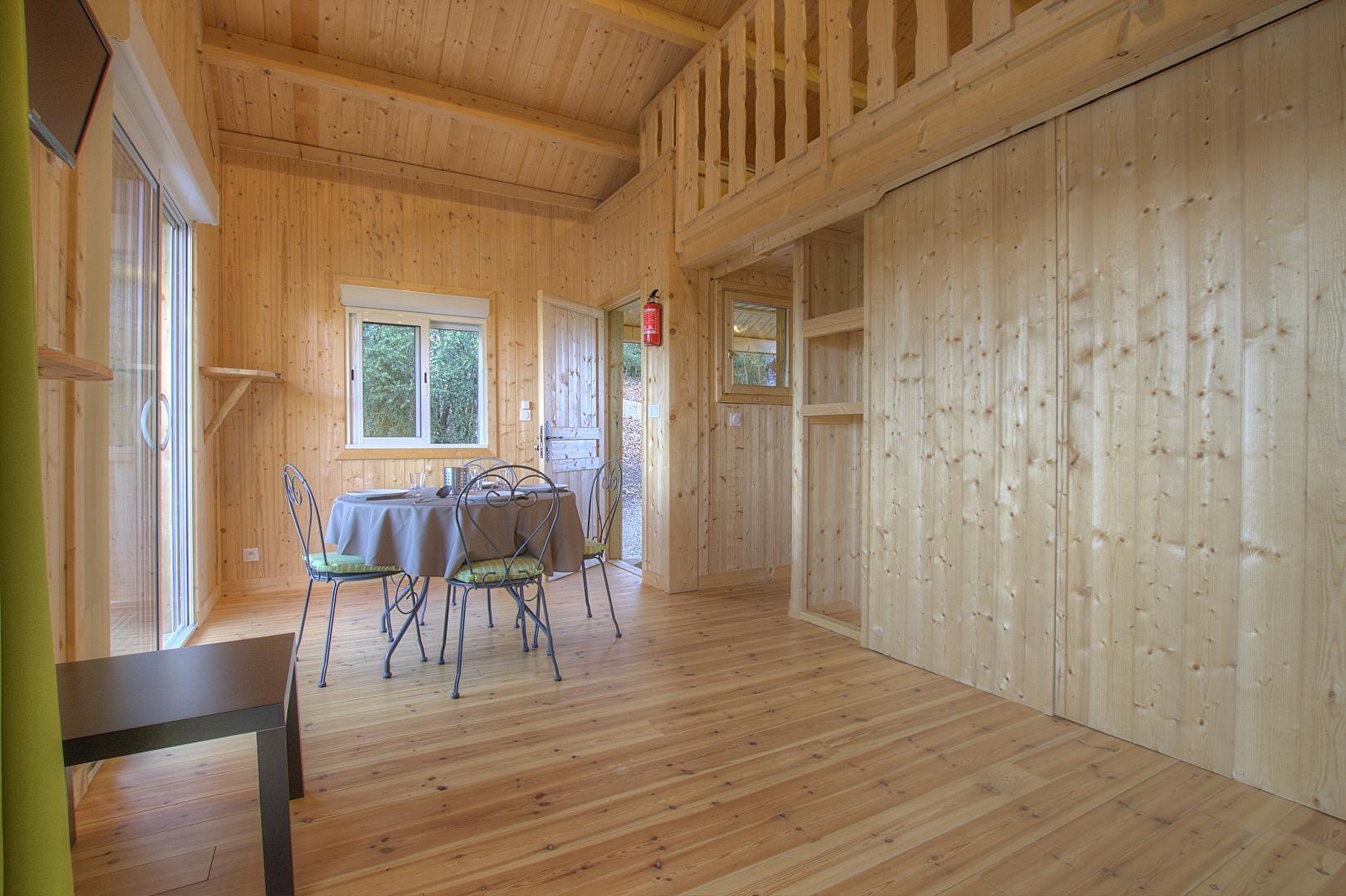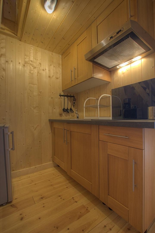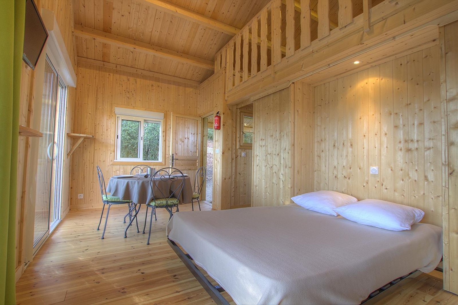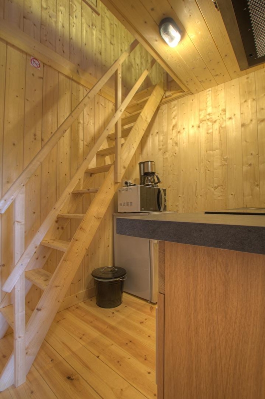 L'accès se fait directement sur la grande pièce de vie, les 2 grandes baies vitrées la prolongent sur la terrasse rectangulaire de 17 m² avec vue plongeante sur la Rivière d'Ain. Aux beaux jours, la terrasse vous permettra de profiter du soleil en après-midi et une partie de la soirée. La pièce de vie principale à l'ambiance vert printemps est aménagé d'un espace repas "ambiance jardin" et, le soir, se transforme se transforme en pièce à sommeil avec son couchage pour deux personnes (lit en 150 cm) intégré dans un rangement/placard mural. La mezzanine, ouverte, composée de deux lits 90 cm dont l'accès se fait par un escalier "étroit" donne également sur la pièce de vie. Son accès cocconing permet une véritable intimité. A l'écart de la pièce de vie, au pied de l'escalier de la mezzanine, se trouve une kitchenette pratique tout confort avec 2 plaques vitro céramique, un petit frigo avec espace congélateur et le micro-onde. L'accès à la salle d'eau se fait de la pièce de vie. Un kit avec les produits de " base " vous est remis à votre arrivée. Le Betet également fait partie d'un site " nature " comprenant au total 7 cabanes et lodges complètement intégrées dans cette forêt de buis, niché sur les hauteurs de Serrières sur Ain, en aplomb de la rivière d'Ain. Chaque cabane à sa propre identité et est construite sur piloti à 2 mètres du sol, les accès et terrasse sont entièrement sécurisés. Site d'exception, dans les gorges de l'Ain, permettant la pratique du canoë, aviron ou simplement baignade. En hauteur sur les falaises, possibilité de randonner, avec GR et PR.