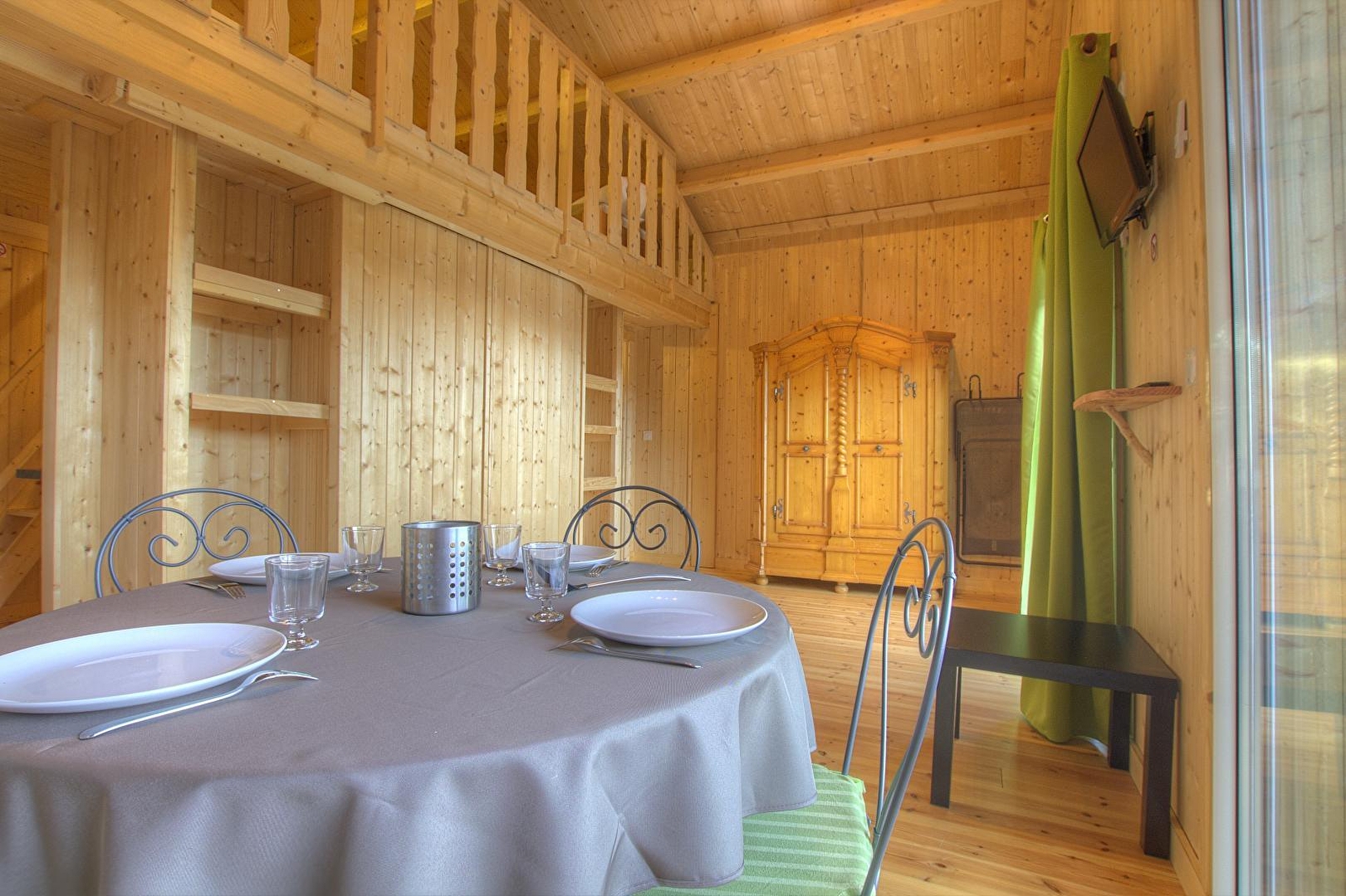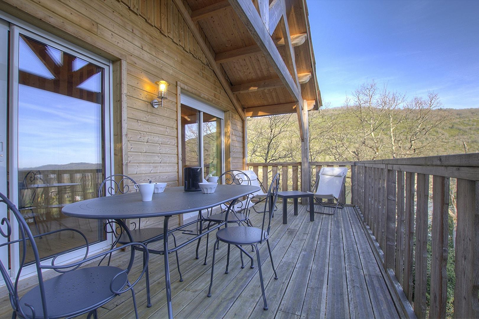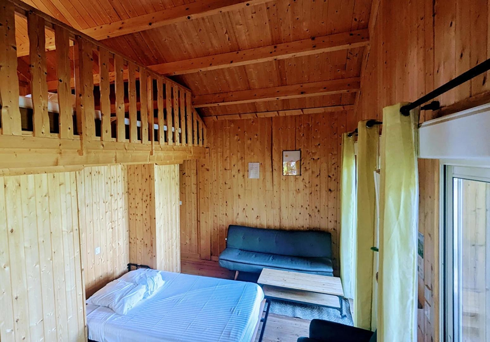 L'accès se fait directement sur la grande pièce de vie, les 2 grandes baies vitrées la prolongent sur la terrasse rectangulaire de 17 m² avec vue plongeante sur la Rivière d'Ain. Aux beaux jours, la terrasse vous permettra de profiter du soleil en après-midi et une partie de la soirée. La pièce de vie principale à l'ambiance vert printemps est aménagé d'un espace repas "ambiance jardin" et, le soir, se transforme se transforme en pièce à sommeil avec son couchage pour deux personnes (lit en 150 cm) intégré dans un rangement/placard mural. La mezzanine, ouverte, composée de deux lits 90 cm dont l'accès se fait par un escalier "étroit" donne également sur la pièce de vie. Son accès cocconing permet une véritable intimité. A l'écart de la pièce de vie, au pied de l'escalier de la mezzanine, se trouve une kitchenette pratique tout confort avec 2 plaques vitro céramique, un petit frigo avec espace congélateur et le micro-onde. L'accès à la salle d'eau se fait de la pièce de vie. Un kit avec les produits de " base " vous est remis à votre arrivée. Le Betet également fait partie d'un site " nature " comprenant au total 7 cabanes et lodges complètement intégrées dans cette forêt de buis, niché sur les hauteurs de Serrières sur Ain, en aplomb de la rivière d'Ain. Chaque cabane à sa propre identité et est construite sur piloti à 2 mètres du sol, les accès et terrasse sont entièrement sécurisés. Site d'exception, dans les gorges de l'Ain, permettant la pratique du canoë, aviron ou simplement baignade. En hauteur sur les falaises, possibilité de randonner, avec GR et PR.