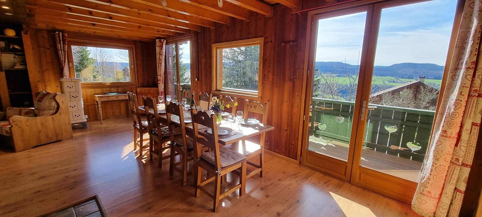 Chalet bois avec vue imprenable sur la vallée de Foncine le Haut. Ce chalet indépendant est composé au premier étage d'une pièce à vivre lumineuse, comprenant une cuisine équipée, salle à manger et coin salon (canapé et télévision). Salle d'eau avec grande douche à l'italienne et wc. Au 2eme étage, deux chambres. La première équipée d'un lit de 140x190cm, la seconde d'un lit de 160x200 et d'un lit de 140x190cm. Côté extérieur, balcon, terrasse avec salon de jardin et barbecue et terrain attenant non clos. En hiver, venez profiter de la station de ski familiale de Foncine. En été, vous pourrez apprécier les nombreux sentiers de randonnée au départ du gîte. N'attendez plus pour réserver !