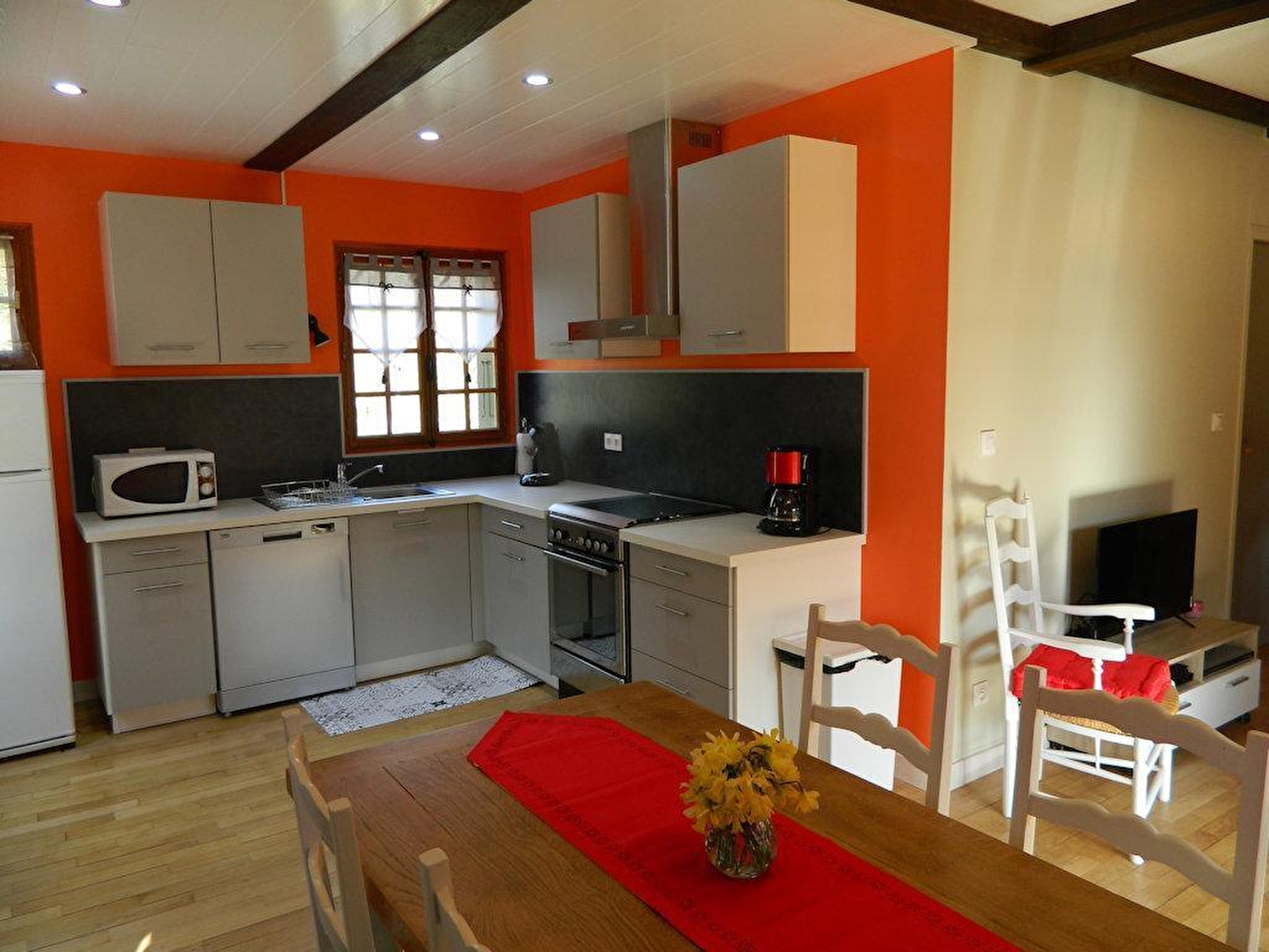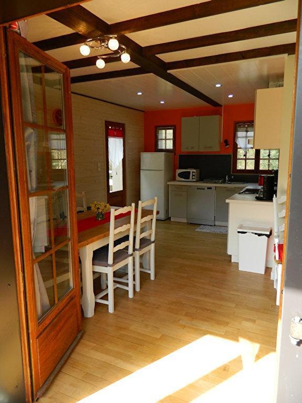 Idéalement situé à 15 minutes du lac de Chalain, de Château-Chalon et Baume-les-Messieurs (plus beaux villages de France), de Poligny (capitale du Comté), le Chalet du ROCHERET se situe dans le village de Bonnefontaine sur le Premier Plateau du Jura à 550m d'altitude, en pleine nature, au centre d'un parc privé de 4000 m². Ce chalet tout confort, de 75 m², entièrement rénové en 2020, offre une grande terrasse de 20 m² surplombant son parc boisé. À l'étage : - une cuisine équipée ouverte sur la pièce à vivre avec accès sur la terrasse - une chambre avec un lit double - une chambre avec 2 lits simples - un coin d'eau avec une vasque et un wc Au rez-de-chaussée : - une chambre avec un lit double et un lit simple - une salle d'eau avec 2 vasques, une douche et un wc Côté extérieur, vous pourrez profiter d'un salon de jardin, de transats et d'un barbecue. La propriétaire met également gracieusement à votre disposition des vélos de différentes tailles. Garages pour vélos et motos. Note : un forfait ménage obligatoire d'un montant de 70 euros s'appliquera automatiquement au moment de la réservation.