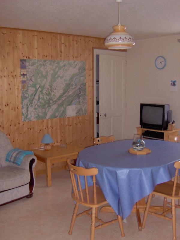 Logement à l'étage de la maison des propriétaires, avec entrée indépendante. Cuisine-séjour, salle d'eau, sèche linge, wc indépendants. ch1: 1 lit 2 pl, ch2: 3 lits 1 pl, terrain attenant non clos, salon de jardin, barbecue, balançoire. Chauffage électrique. Parking privé.