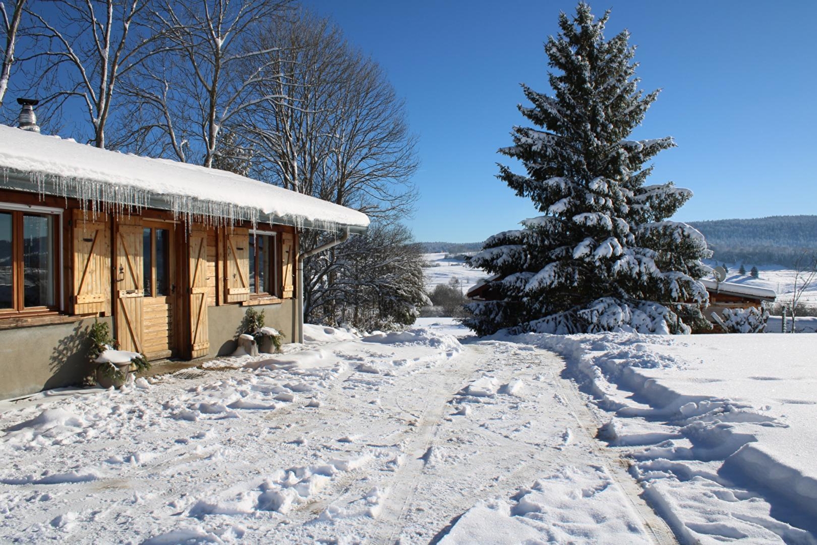 Chalet indépendant de plain-pied situé en pleine nature, au pied des pistes de skis de fond et au départ de nombreux circuits de randonnée. Coin-cuisine équipé, salon avec poêle-cheminée (bois fourni gratuitement), canapé convertible 2 pl. Une chambre avec un lit 2 pl. Salle d'eau et wc intégrés. Chauffage électrique d'appoint. Terrain attenant non clos, salon de jardin, barbecue. Garage pour motos et vélos. Pas de machine à laver l'hiver.Un seul animal autorisé.