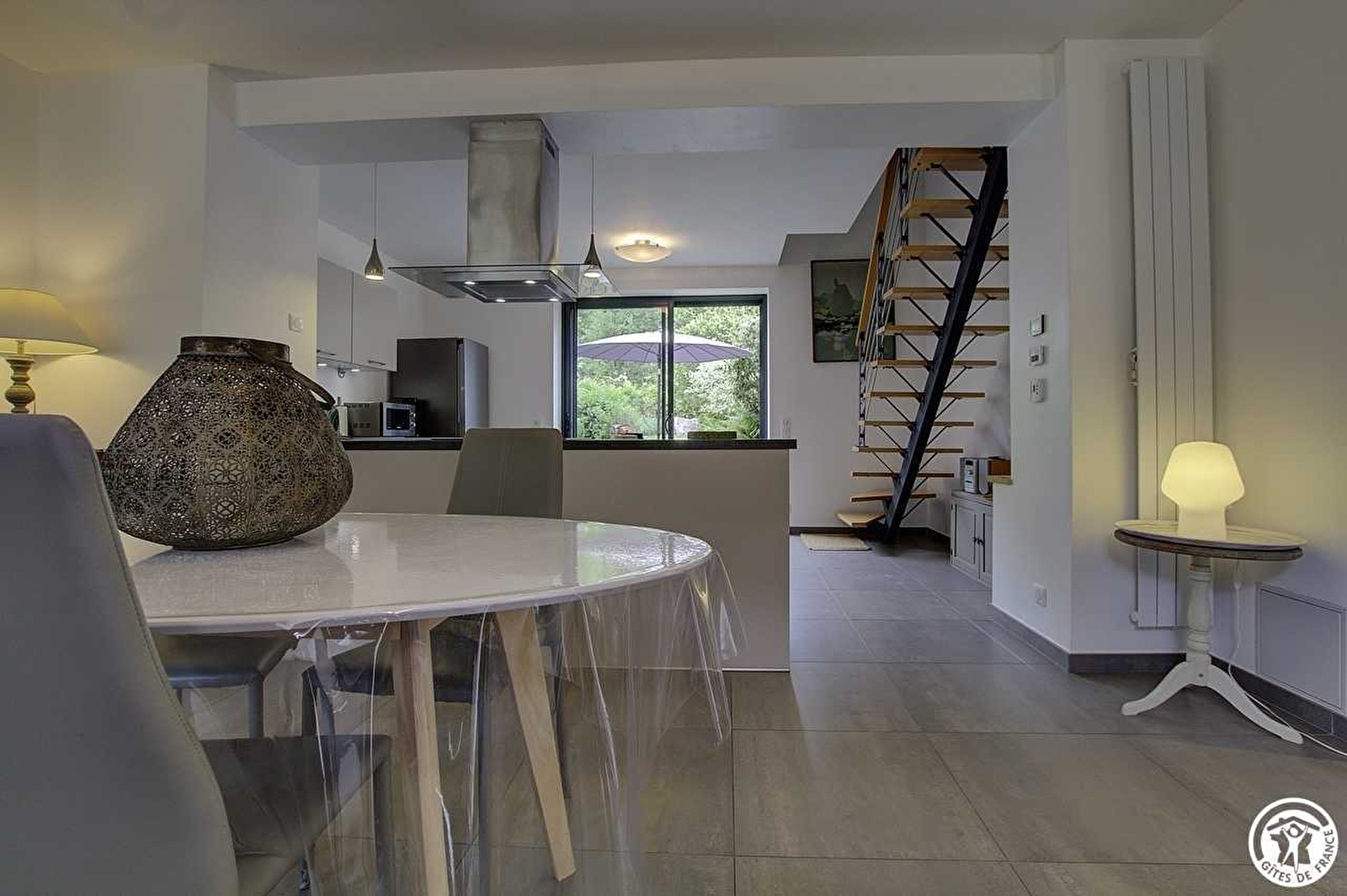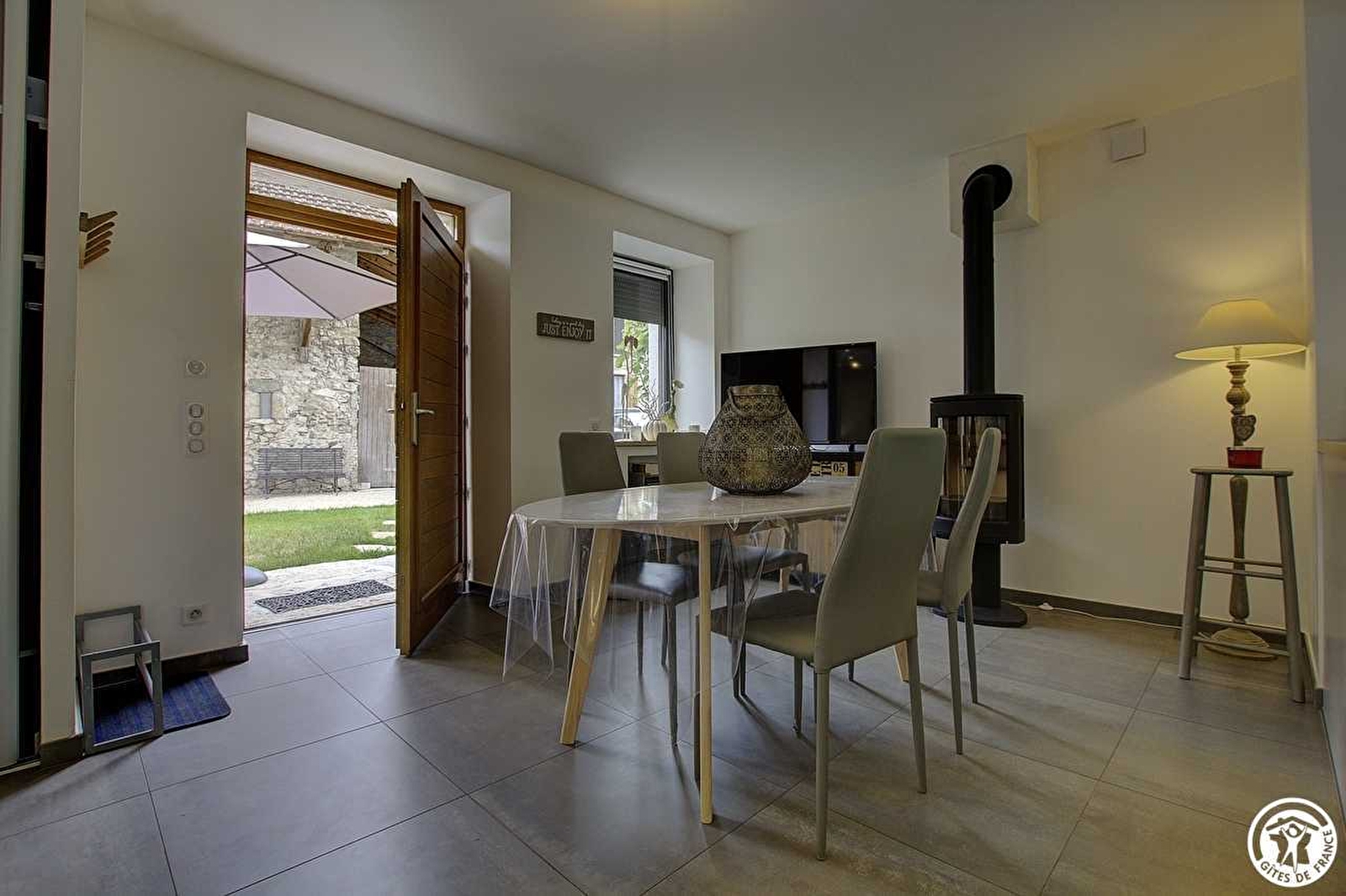 Bienvenue dans la maison de famille rénovée au fil de plusieurs années pour en faire un lieu où il fait bon vivre et prendre son temps. Au Clos des Hirondelles, au centre du lieu dit, on aime flâner dans le jardin, observer les oiseaux et prendre le temps de vivre tout simplement. Cette maison propose une décoration épurée et chaleureuse qui ravira petits et grands. Pour accéder au Clos des Hirondelles, garez vous sur le parking qui vous est dédié, puis après avoir effleuré les pas japonnais, une belle porte en bois s'ouvre sur une grande pièce de vie composée d'une cuisine équipée ouverte sur le séjour et son espace salon (canapé-lit en 140) ; une salle d'eau avec un accès direct sur une terrasse privative et son jardin commun avec les propriétaires. Un WC indépendant . Depuis la pièce de vie, un escalier vous mène vers deux chambres dont une chambre comprenant un lit double de 140cm et une seconde chambre équipée de deux lits simples en 90cm. Une salle de bain et son WC intégré complètent ce bien. Chauffage électrique et poêle à bois. La location comprend l'ensemble des prestations en toute sérénité : les lits sont faits à l'arrivée, le linge de toilette et les charges comprises. Local à vélos à disposition. Idéalement situé au confins de l'Ain, de l'Isère et de la Savoie, le gîte est au cœur de paysages et d'activités très variés : ViaRhôna et Grand Colombier à proximité, nombreux lacs alentours Aiguebelette, Paladru- Charavines, Aix-les -Bains, Annecy, mais aussi Ambléon et Barterand à découvrir, activités nautiques avec FoxaGliss (voile, Stand Up Paddle, canoë) à 1km et même téléski nautique à 5 km ! Walibi est tout proche (10km), mais aussi la Maison d'Izieu (4 km), Belley la patrie de Brillat-savarin (16km), Morestel cité des peintres (20 km), la Chartreuse et les monts du Bugey....