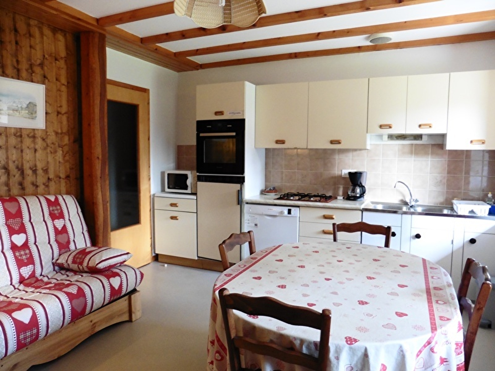 Au cœur du Parc Naturel Régional du Haut Jura, dans un quartier calme de la Station des Rousses, idéalement situé à seulement quelques mètres du Lac pour l'été, et ainsi que des navettes skibus pour l'hiver, est aménagé un logement à l'étage d'une maison mitoyenne. Cuisine entièrement équipée et séjour avec TV écran plat et canapé convertible 2 pl, salle de bains, wc indépendants, ch1: 2 lits 1 pl, lit bébé à disposition, terrain attenant clos, salon de jardin, barbecue, et jeux extérieurs pour enfants. Local à disposition pour skis et vélos. Parking privé et déneigé. Chauffage central. Toutes charges comprises.