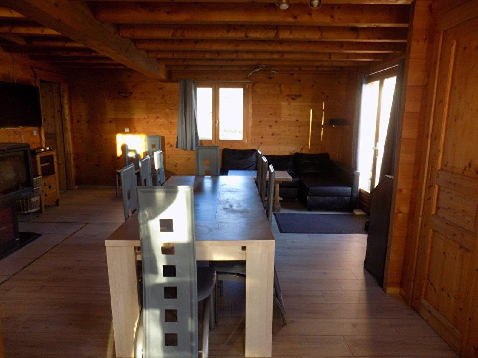 Au coeur de la région des lacs, magnifique chalet, au RDC : séjour-salon coin cuisine intégrée, poêle à bois, lecteur DVD, sèche linge, Ch1 : 1 lit 2 pl, Ch2 : 1 lit 2 pl, salle d'eau, à l'étage : Ch3 : 1 lit 2 pl, Ch4 : 1 lit 2 pl, 2 lits 1 pl, salle de bains, jardin, barbecue, terrain attenant non clos. Toutes charges comprises. WIFI. Le bois est fourni, pas le nécessaire pour allumer (allume-feux, petit bois)