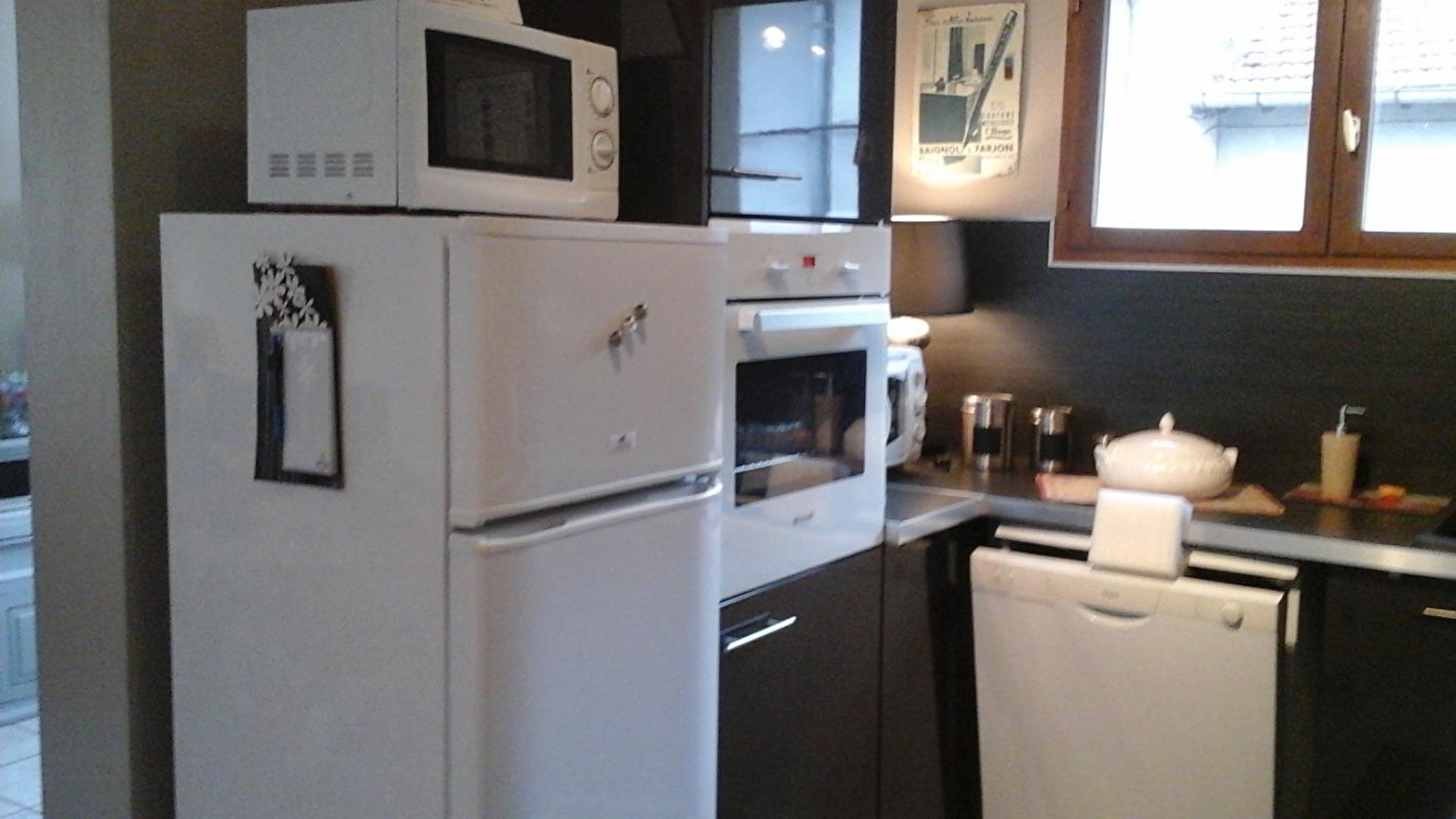 Au centre de la petite ville d'Arbois, capitale des vins du Jura, dans un quartier classé aux Monuments historiques, est aménagé un gîte dans une maison mitoyenne. Au RDC: hall d'entrée. A l'étage : pièce à vivre cuisine intégrée équipée, salle à manger, salon avec canapé convertible TV. CH1: 1lit 2pl +TV, CH2: 1lit 2pl. Salle d'eau, WC indépendant. Balcon offrant une jolie vue sur la rivière " La Cuisance ", barbecue. Garage privatif fermé. Chauffage électrique au sol. Draps, linge de toilette et linge de maison inclus. Tarifs dégressifs à partir de 2 semaines. Référencé par la marque "Vignoble et Découverte". Wifi sur demande. Forfait ménage obligatoire d'un montant de 50 euros.