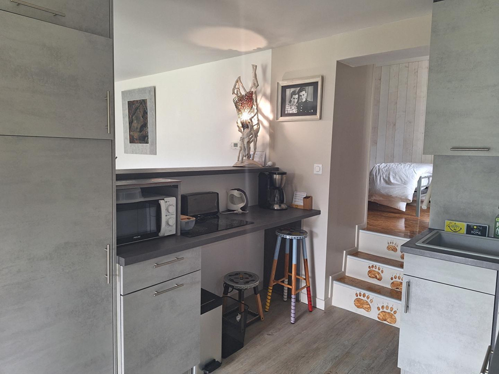 Ce gîte de plain-pied, entièrement indépendant, se situe au rez-de-chaussée de la maison des propriétaires. Il se compose d'une pièce de vie avec cuisine toute équipée, espace salle à manger et coin salon avec canapé et TV, d'une chambre avec 2 lits simples (90*190), de 2 chambres en enfilade, l'une avec un lit simple (90*190) et la seconde avec 1 lit double (140*190), d'une salle d'eau avec douche, d'une lingerie avec dressing et d'un WC indépendant. La propriétaire, Elyane, passionnée de décoration a su apporter sa touche personnelle afin de créer un lieu unique. Possibilité d'accueillir une personne supplémentaire (couchage en canapé convertible dans le salon). Côté extérieur, vous profiterez d'un accès direct à une grande terrasse aménagée avec salon de jardin, transats, store électrique et plancha électrique, donnant sur un grand jardin clos. Vous pourrez ainsi admirer la magnifique vue surplombant les toits du village. Idéalement situé pour découvrir la cité médiévale de Nozeroy, la Source de l'Ain, les cascades du Hérisson et le lac de Chalain. Parking privé sur place et volets dans les chambres.