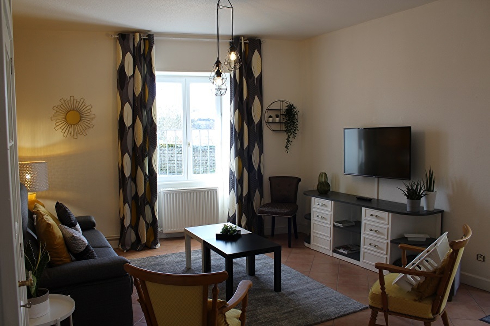 Charmante maison de ville de plain pied, idéalement située, dans un quartier calme et à 10 minutes à pied de la ville historique.Aménagée avec une décoration cosy, la maison se compose d'une pièce à vivre avec cuisine toute équipée (bouilloire, cafetière, cafetière à dosette, grille-pain, appareil à raclette et pierrade) et coin salon avec canapé convertible, TV et lecteur DVD, une chambre avec 1 lit en 140, une salle d'eau, un WC séparé et un cellier. Pour votre plus grand confort, les draps sont fournis et les lits seront faits à votre arrivée. Animal de moins de 10 kgs accepté. Possibilité de garage pour vélos et motos sur demande auprès des propriétaires Côté extérieur, un terrain clos avec une terrasse en bois avec salon de jardin, transats, salon de détente et plancha. Vous pourrez partir à pied depuis le gîte à la découverte de la ville, classée ville d'arts et d'histoire. Vous apprécierez de flâner le long du canal des Tanneurs , de découvrir la ville et ses environs sur des barques électriques ou encore d'emprunter l'Euro véloroute... De nombreux loisirs à proximité : A 10 mns centre-ville, Euro véloroute, piste cyclable, canoé-kayak, accrobranche, aviron, Aquaparc (bassin olympique,, bain bouillonnant, toboggan, rives du Doubs et de la Loue pour pêche et baignade A 15 mns : tennis, équitation, bowling, musée des beaux-arts, maison natale de Pasteur Vous pourrez également faire d'agréables randonnées au cœur de la 3ème plus grande forêt de France (22000 hectares) : la Forêt de Chaux.