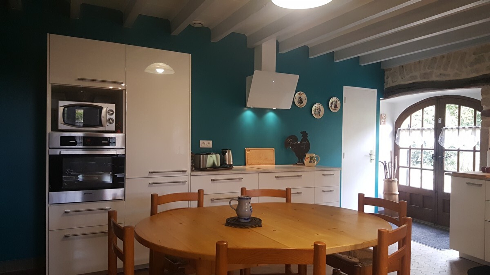 En plein cœur du vignoble jurassien, à proximité des villages de Baume les Messieurs et Château-Chalon, venez découvrir ce gîte aménagé dans une belle maison en pierres apparentes, mitoyen à un autre gîte. Au rez-de-chaussée, vaste pièce à vivre composée d'un espace salle à manger et salon avec cheminée, ainsi que d'une belle cuisine entièrement équipée. Accès par la cuisine au garage ou se trouve une buanderie avec lave-linge, et un wc indépendant. A l'étage, mezzanine salon avec bibliothèque, canapé neuf et confortable convertible pouvant accueillir 2 personnes supplémentaire et télévision écran plat. Salle d'eau avec cabine de douche et wc, et une grande chambre avec un lit de 140cm, un lit de 130cm et un lit de 120cm. Côté extérieur, terrain attenant non clos en bordure de la rivière, équipé d'un salon de jardin et barbecue. Garage pour motos et vélos à disposition. N'attendez plus pour réserver ce petit coin de paradis ! Possibilité d'accueillir jusqu'à 9 personnes avec le gîte mitoyen (référence G2123).