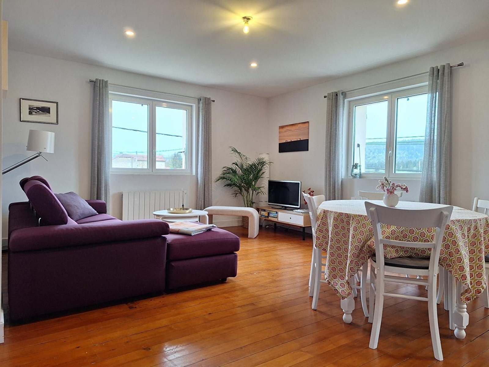 Situé au 1er étage, au dessus de l'ancienne fruitière à Comté, ce gîte lumineux et très calme surplombe l'exploitation familiale et vous offre une vue imprenable sur les chèvres, les vaches et les pâturages. Si vous le souhaitez, vous pourrez goûter aux produits de la ferme comme lait ou le fromage de chèvre et visiter l'exploitation. Il se compose d'une pièce de vie avec cuisine toute équipée, coin salle à manger et espace salon avec TV, d'une chambre avec 1 lit double (160*200), d'une chambre avec 1 lit double (140*190) et 1 lit simple (90*190) et dune salle d'eau avec douche et WC. Côté extérieur, vous pourrez profitez d'une terrasse couverte non attenante avec salon de jardin, transats et barbecue. Idéalement situé, au cœur du Parc naturel régional du Haut-Jura, vous pourrez faire de nombreuses randonnées à pied ou à vélo, pratiquer le ski de fond et la raquette. Cet hébergement bénéficie de la marque valeur parc.