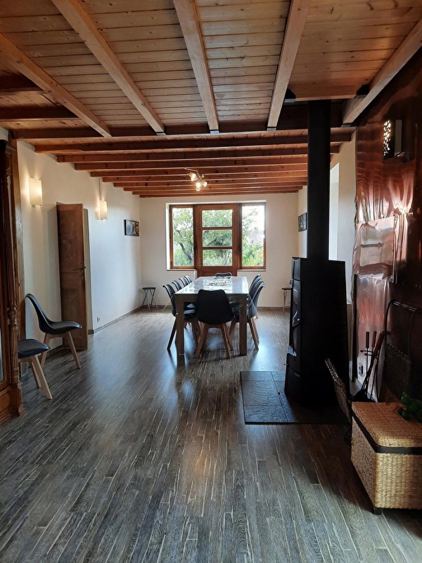 Très bien situé au coeur de la Petite Montagne, à proximité du barrage et du lac de Vouglans, venez découvrir en famille ou entre amis cette maison familiale ou il fait bon vivre. Au rez-de-chaussée, cuisine entièrement équipée, vaste salle à manger salon avec canapé et télévision écran plat, salle d'eau avec grande douche et wc indépendants. A l'étage, 3 chambres : l'une avec un lit de 160x200cm, la seconde avec 2 lits de 90x200 pouvant former un grand lit de 180cm et la dernière avec 4 lits de 90x200 dont deux lits superposés. Dressing, buanderie avec lave linge et sèche linge, aspirateur robot, nécessaire de repassage. Salle de bain avec grande baignoire et double vasque. A l'extérieur, cour, terrasse équipée d'un salon de jardin, plancha et barbecue, et terrain attenant clos à votre disposition (1500m² au total). Connexion internet via la fibre optique. N'attendez plus pour réserver ! (Coordonnées GPS: Latitude: 46.36051841326494 Longitude: 5.612798323592347)