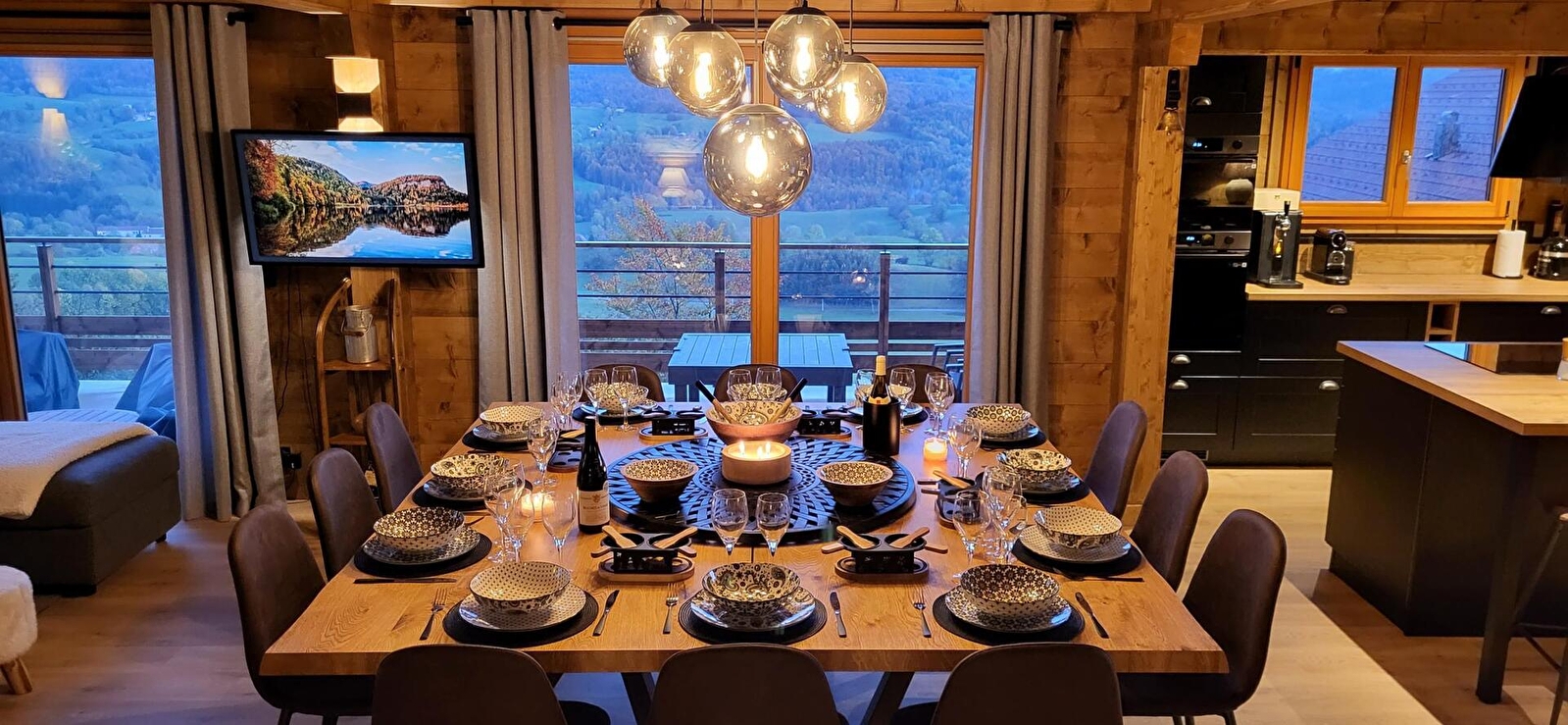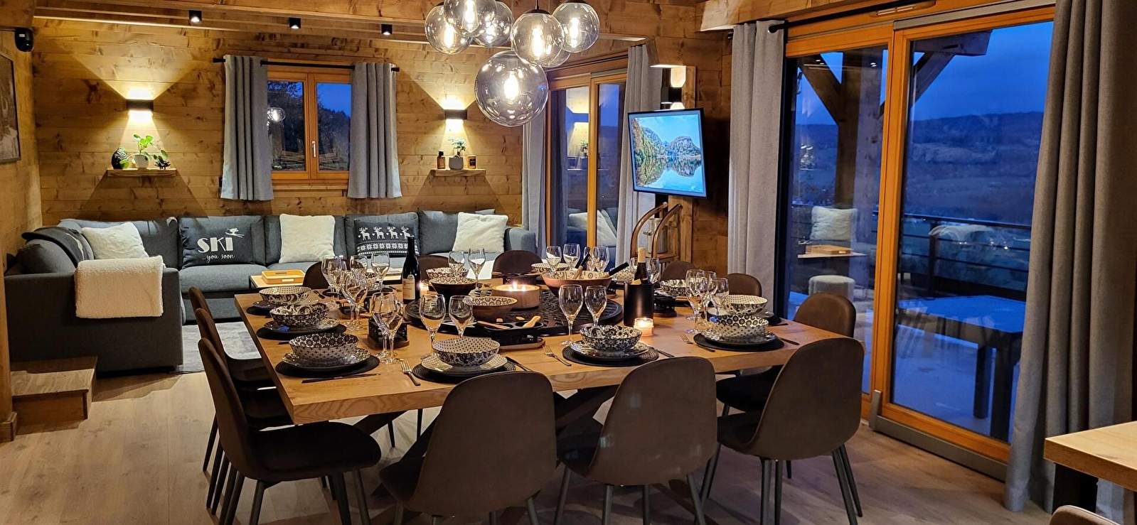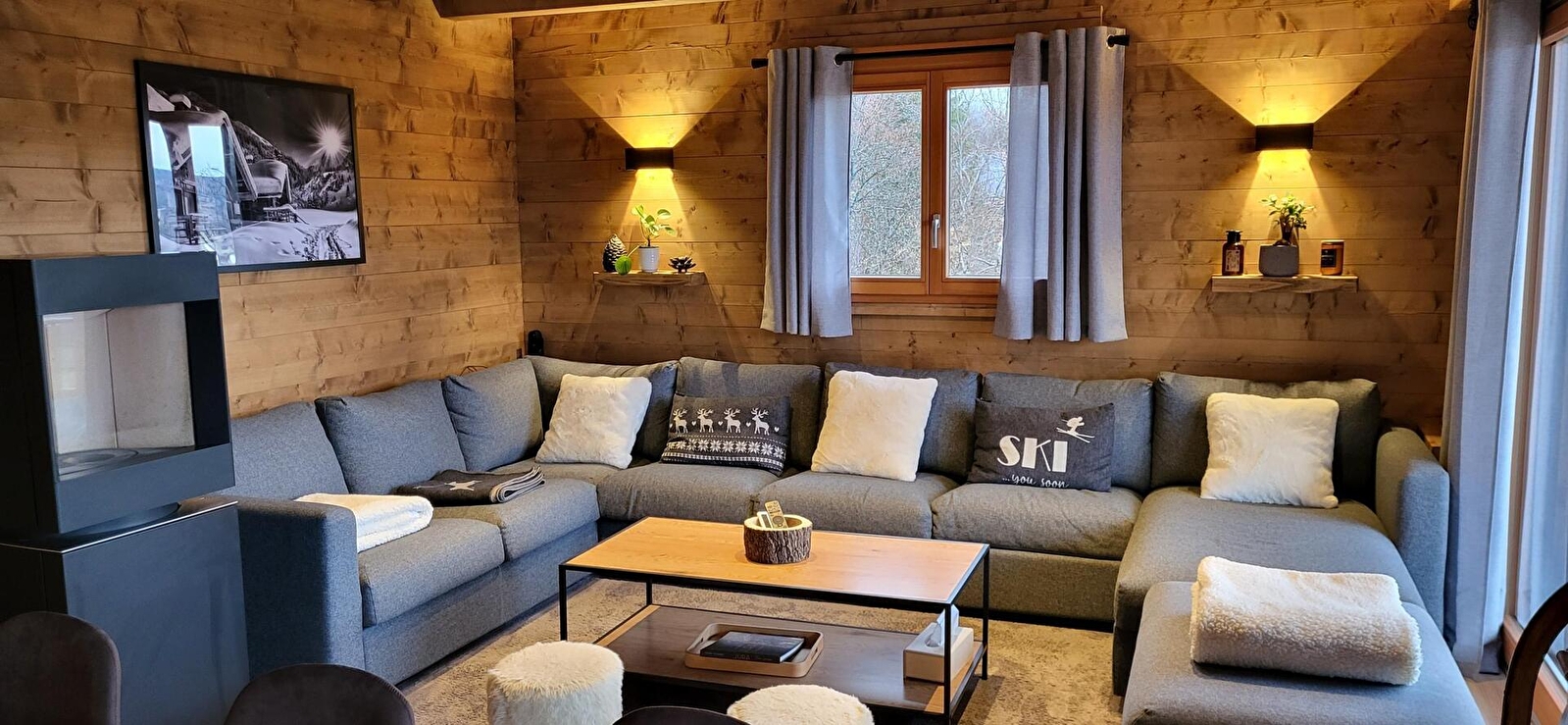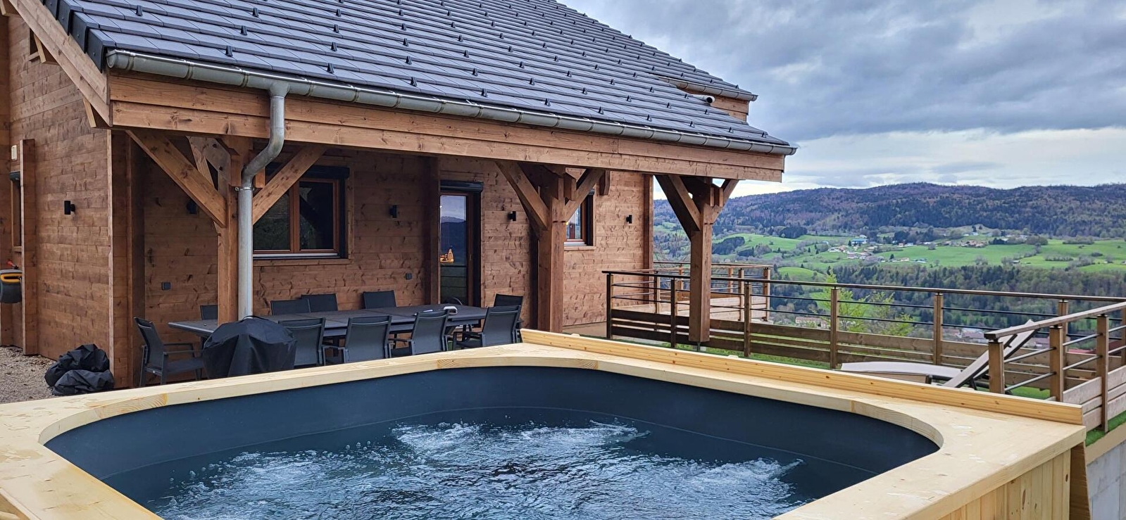 Situé sur les hauteurs de Foncine-le-haut, dans un secteur calme, ce chalet neuf à la fois moderne et traditionnel offre une vue magnifique sur le village et les montagnes du Jura. Le chalet peut accueillir aisément 12 personnes qui profiteront d'une grande pièce de vie avec cuisine toute équipée, salle à manger, salon avec TV connectée (abonnement Netflix intégré) et poêle à granulés, espace bureau pour un télétravail idéal en profitant d'une superbe vue. espace détente dans la mezzanine de l'étage avec bar, billard américain et salon indépendant, salle de sport avec sauna, tapis de course, rameur, vélo. Le chalet est composé de quatre chambres, deux chambres avec un lit double et un canapé lit, chacune avec une salle de bains et un WC privatifs, une chambre avec un lit double et une salle de bains et un WC privatifs, et un dortoir de six personnes. Pour votre plus grand confort, les lits seront faits à votre arrivée et les serviettes de toilettes sont fournies. 1 emplacement dans garage fermé Côté extérieur, vous pourrez profiter de la nature environnante en vous prélassant dans le spa extérieur. Une terrasse avec salon de jardin, salon de détente et barbecue De nombreuses activités sont disponibles toute l'année à proximité du chalet. Hiver : Grand domaine de ski nordique dans le village ainsi qu'un petit domaine alpin pour le plaisir ou l'apprentissage, raquettes, chiens de traineaux, .... Le reste de l'année, Trail, VTT, randonnée, canyoning, pêche, ...