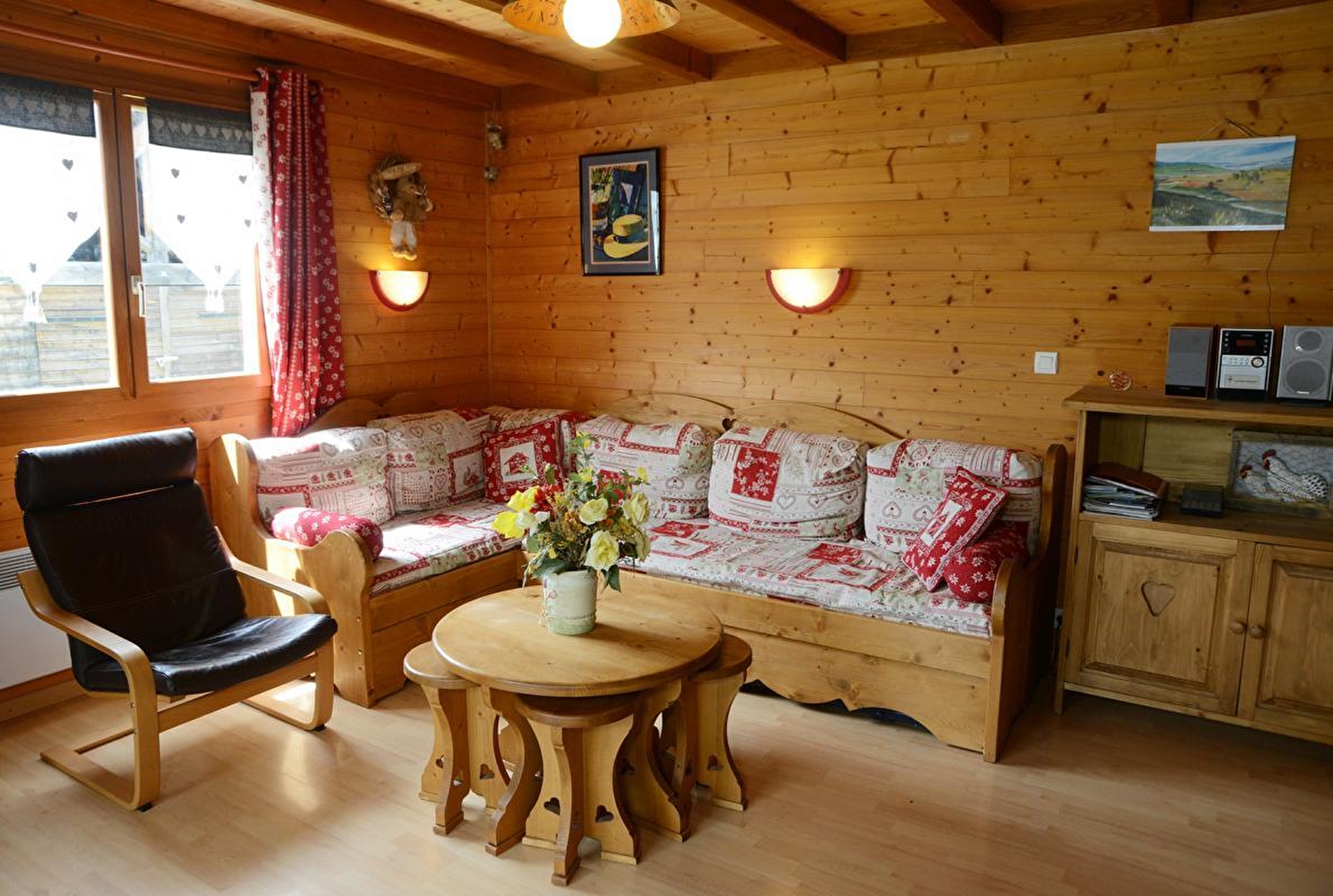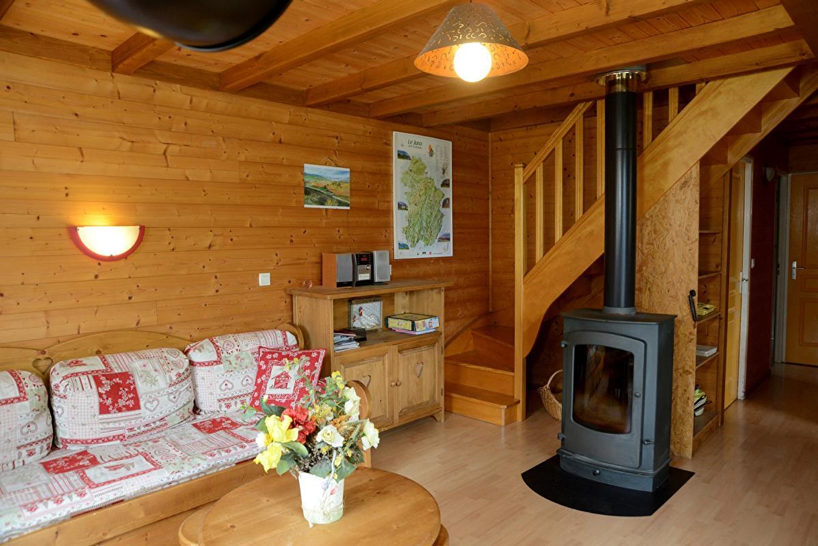 Chalet indépendant à proximité d'un autre gîte. Au rez de chaussée: coin-cuisine, salon-séjour, poêle à bois, salle de bains, WC indépendant, lingerie, ch1: 1 lit 2 pl. A l'étage: ch2: 2 lits 1 pl, ch3: 2 lits 1 pl, grand terrain attenant avec piscine privée clôturée chauffée l'été, salon de jardin, parking, barbecue, chauffage électrique et bois. Accès WIFI. Sur place, vous trouverez un espace bien être privatif avec hammam, bain à remous et sauna en option, une pizzéria à emporter (avril à septembre).