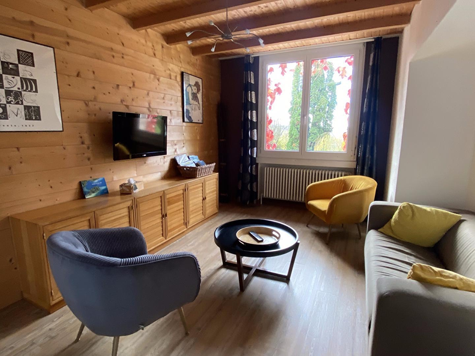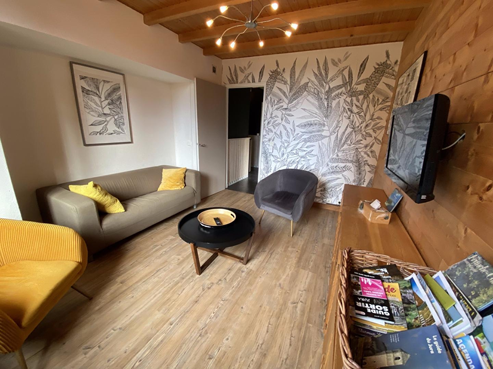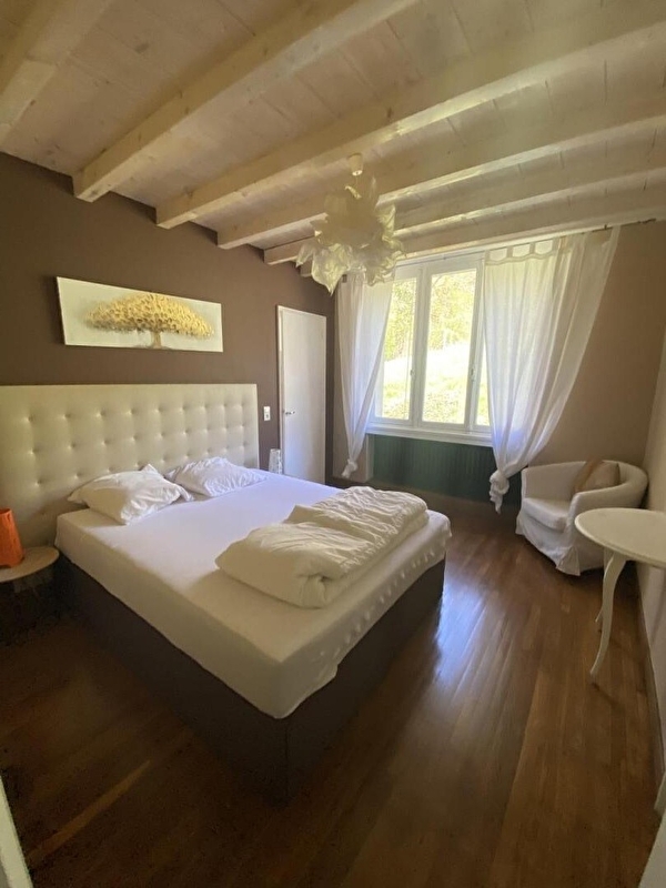 Idéalement situé entre le Haut Jura et la Région des Lacs et des Cascades, non loin des principaux sites touristiques du département, logement indépendant et spacieux, situé à l'étage. Séjour, salon, coin-cuisine avec plaques vitro-céramique, ch1: 1 lit 160x200cm, salle d'eau privée, ch2: 1 lit 160X190cm, salle d'eau privée, wc indépendants, terrain attenant clos de 1,5ha, cour, salon de jardin, barbecue. Fourneau à granulés en sus.