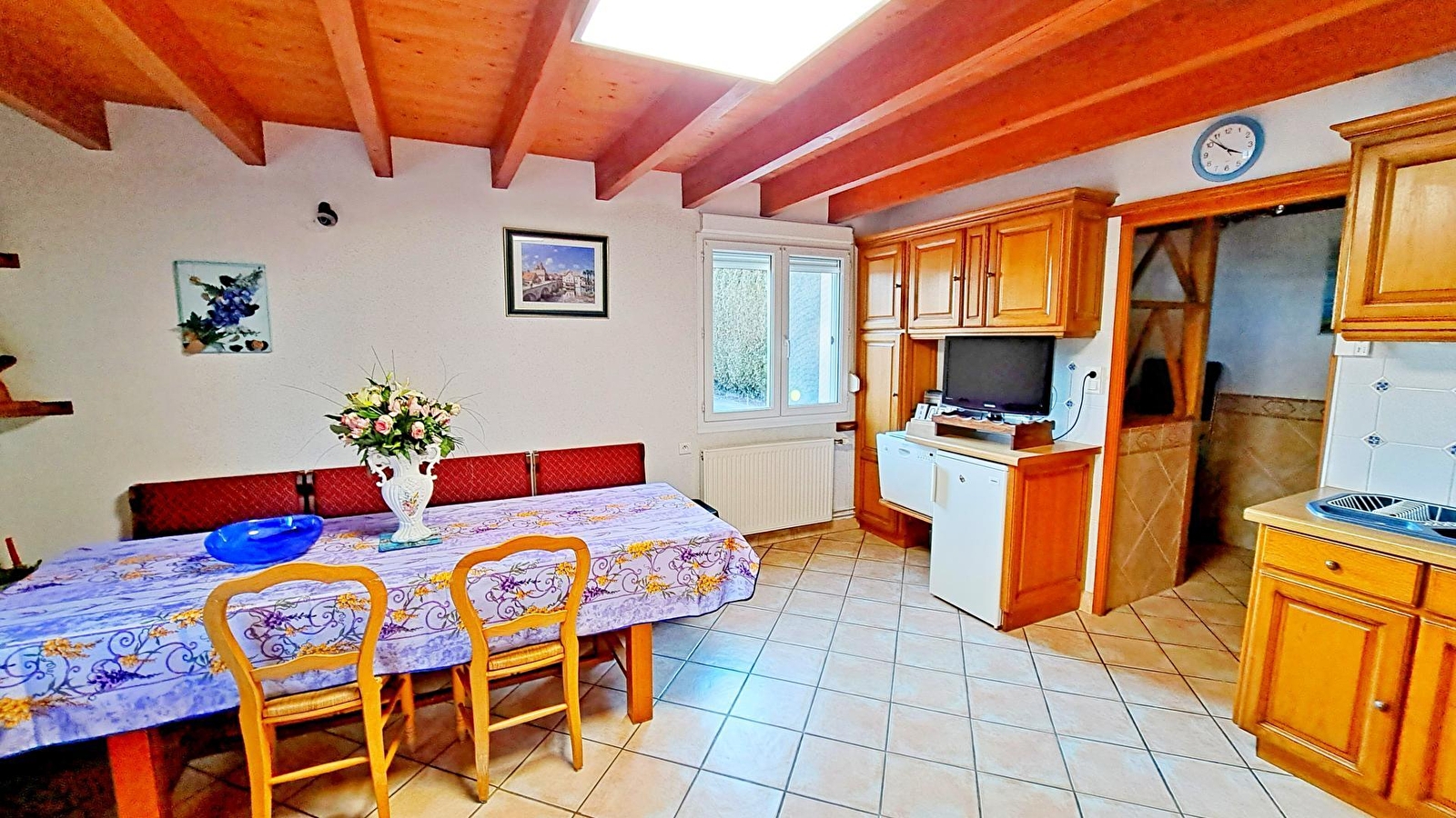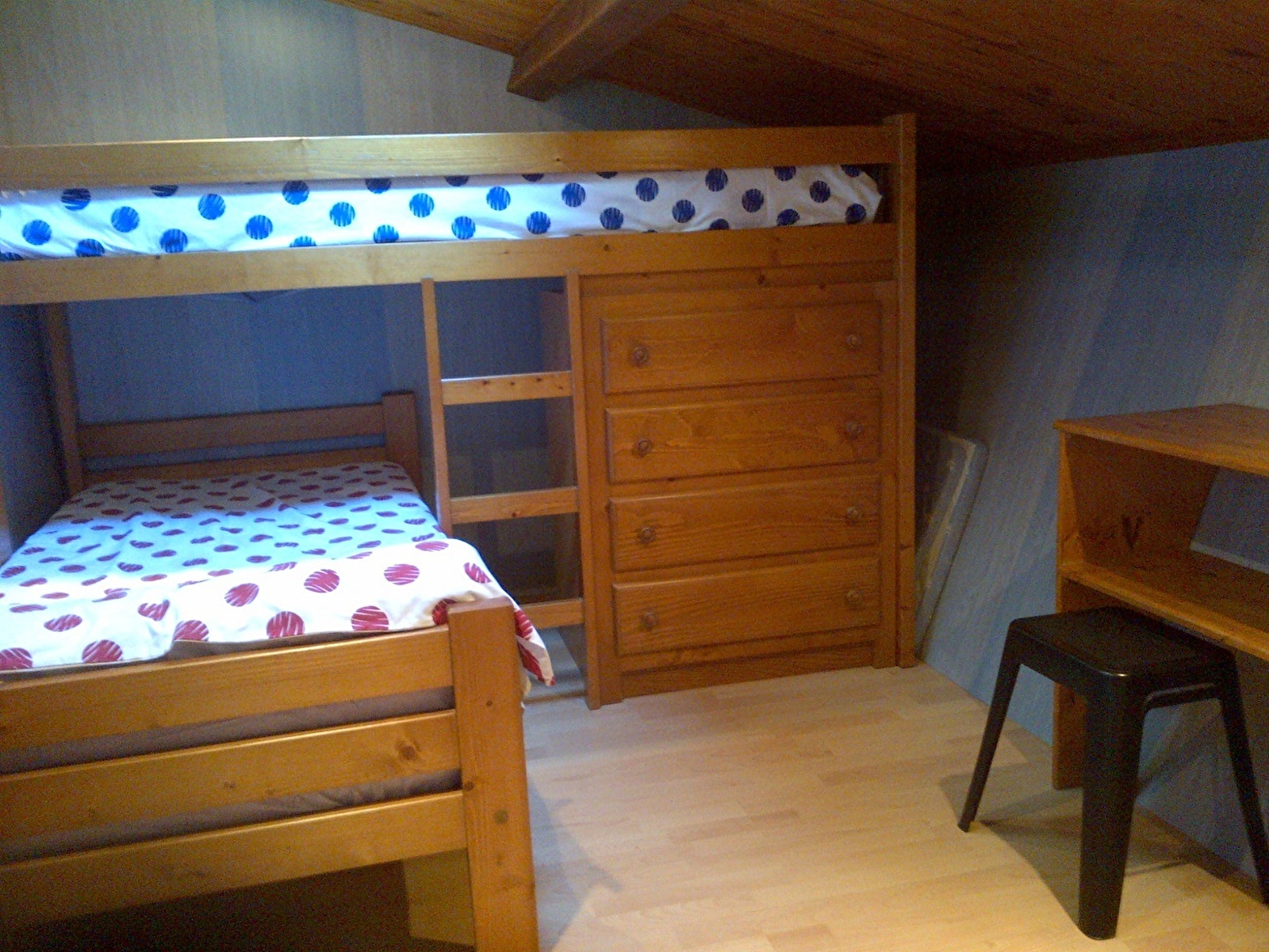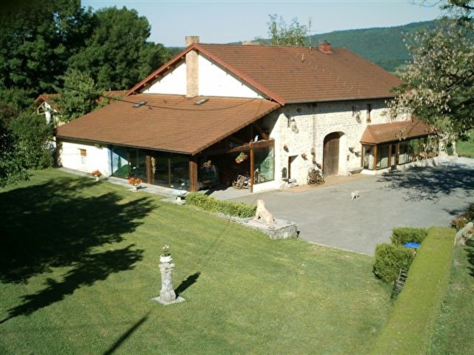 Ancienne ferme rénovée près du lac de Chalain, maison mitoyenne, accès indépendant. RDC: cuisine-séjour, coin salon, salle d'eau. A l'étage: ch1: 1 lit 2 pl + 1 lit 1 pl, coin nuit pour les enfants avec 2 lits superposés. Salon de jardin, barbecue, cour, balançoires, parc de 40a arboré, verdoyant et particulièrement soigné par les propriétaires, passionnés d'outils anciens. Ils auront plaisir à vous faire visiter leur musée de la forge. Eau chaude produite par énergie solaire. Animaux acceptés après entente préalable. Possibilité 5 personnes, contacter propriétaire. Classé 3* meublé tourisme. Animaux: 10€ supplémentaires pour ménage. Cabane tournante à disposition pour les enfants.
