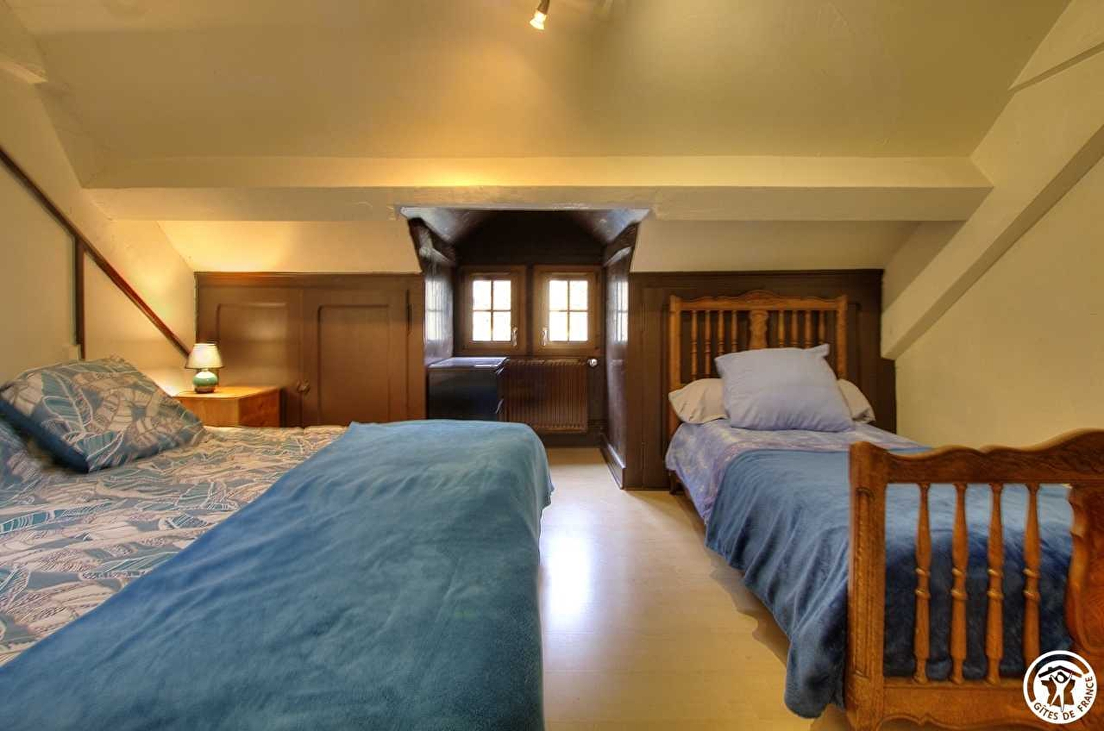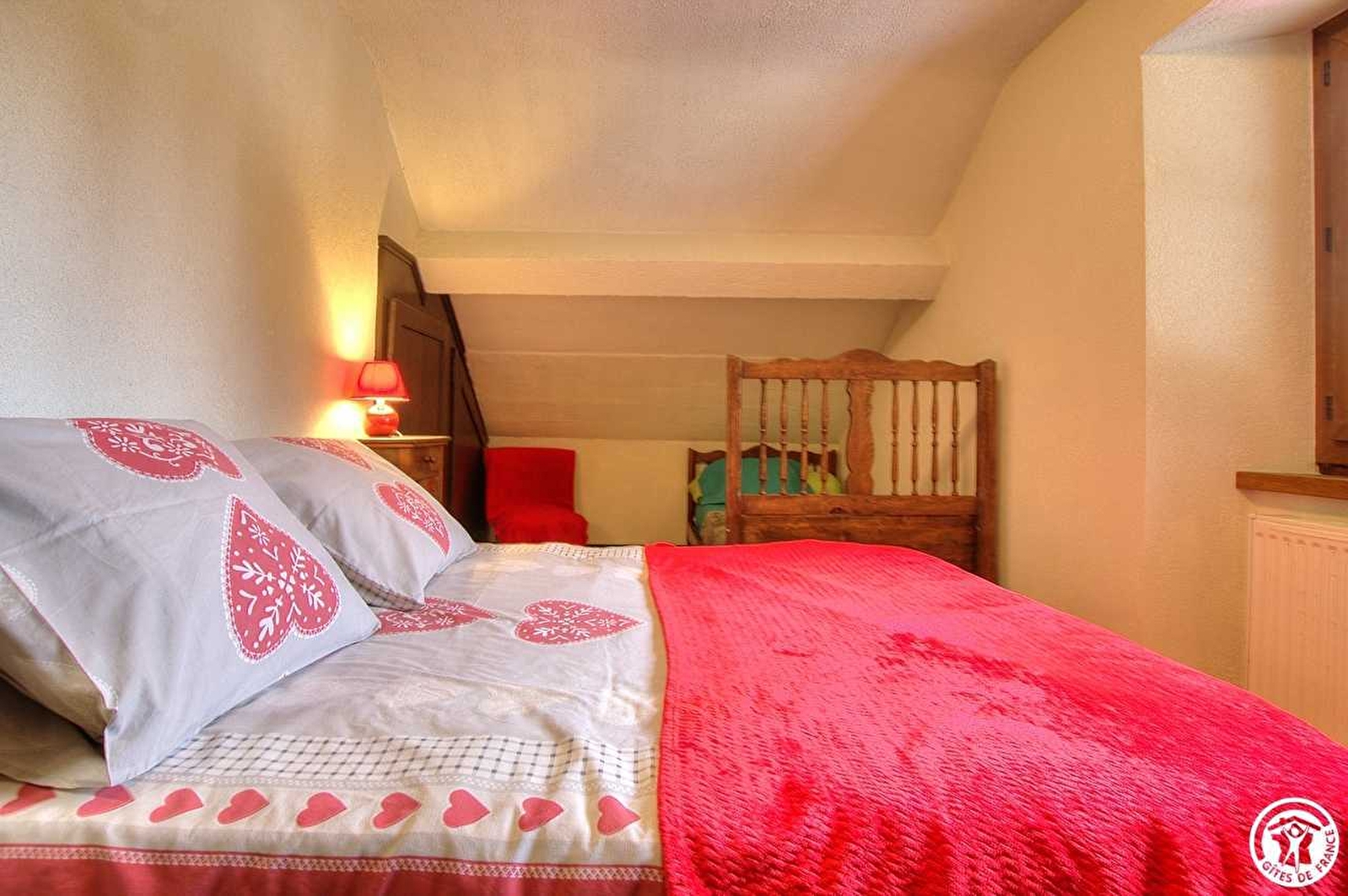 Le gîte est composé de 3 chambres sous les combes (une chambre avec un lit en 140 et un lit simple, une deuxième chambre avec un lit double 160 et un lit simple et une 3ème chambre avec deux lits simples en superposés. Salle d'eau et WC au rez de chaussé, salle d'eau avec WC intégré au 1er étage. Pas d'internet mais la certitude d'un dépaysement total. Réseau portable peu développé. Wifi avec satellite disponible sur place. Vous le trouverez dehors avec ses deux barres ou dans le séjour. Le chauffage et l'électricité compris. Pour les draps, une location est prévue et d'un montant de 10€ par lit. Linge de toilette non fournis ni loué.