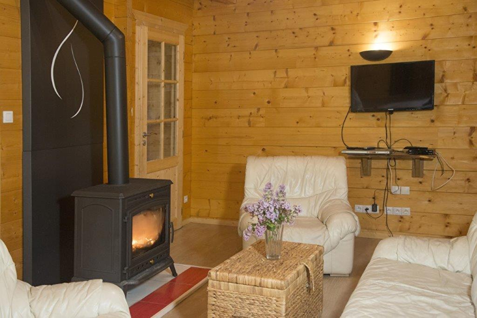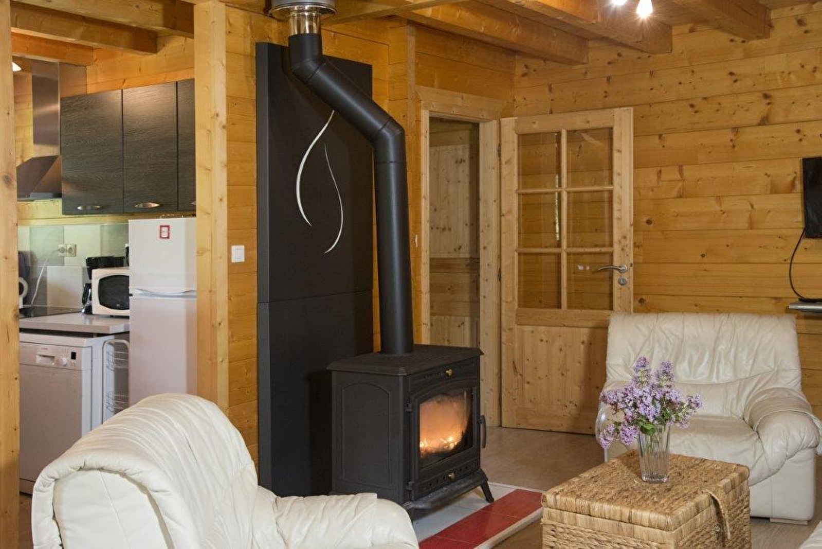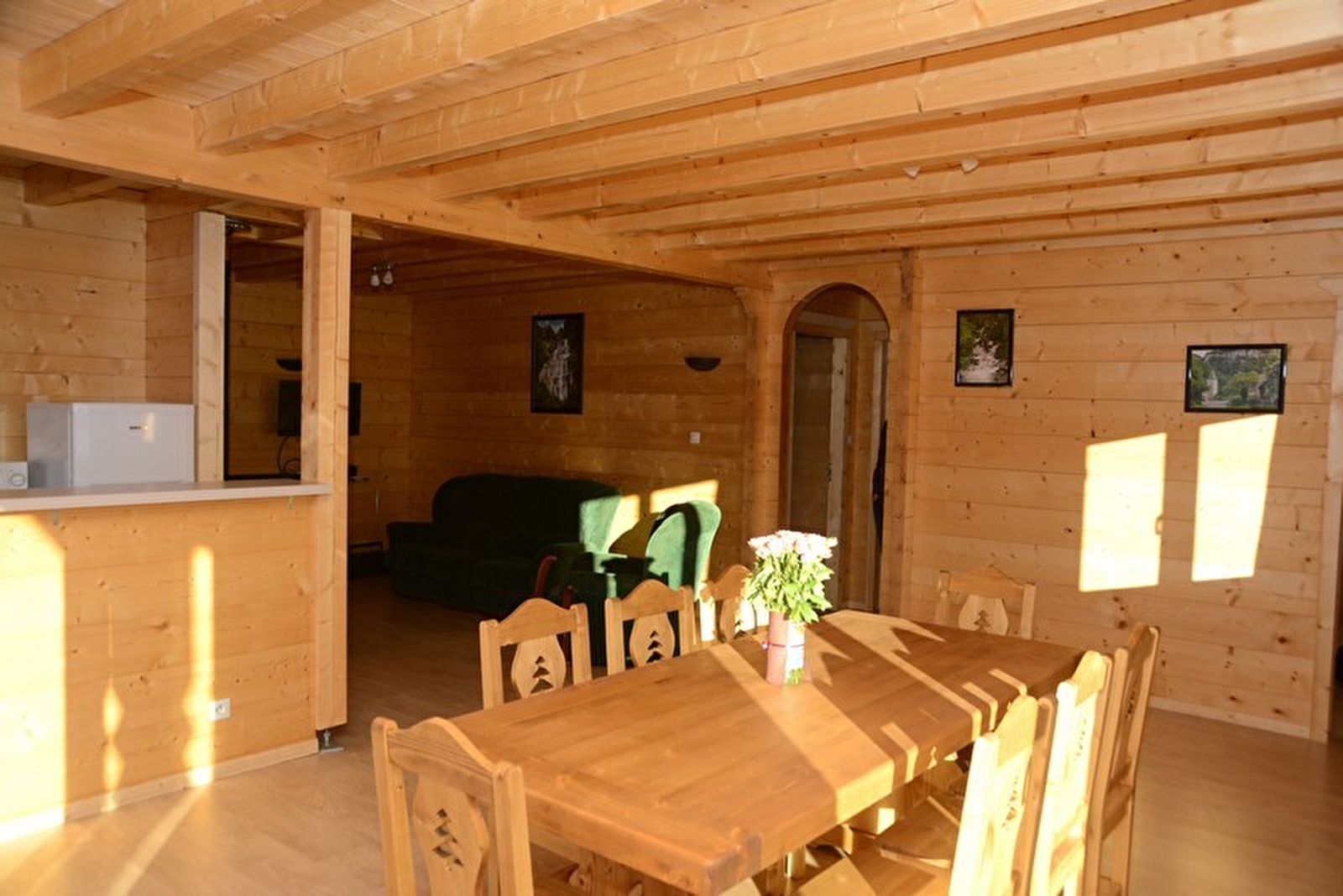 Chalet bois indépendant situé en plein cœur de la région des lacs. Ce gîte de plain pied se compose d'un hall d'entrée, d'une grande pièce à vivre avec salon, salle à manger et coin cuisine, 3 chambres avec 1 lit 2 placeS (possibilité d'un couchage supplémentaire dans l'une des chambres), salle d'eau, wc indépendant, garage. Terrain attenant non clos avec terrasse, salon de jardin et barbecue. Caution de 150 € par animal.