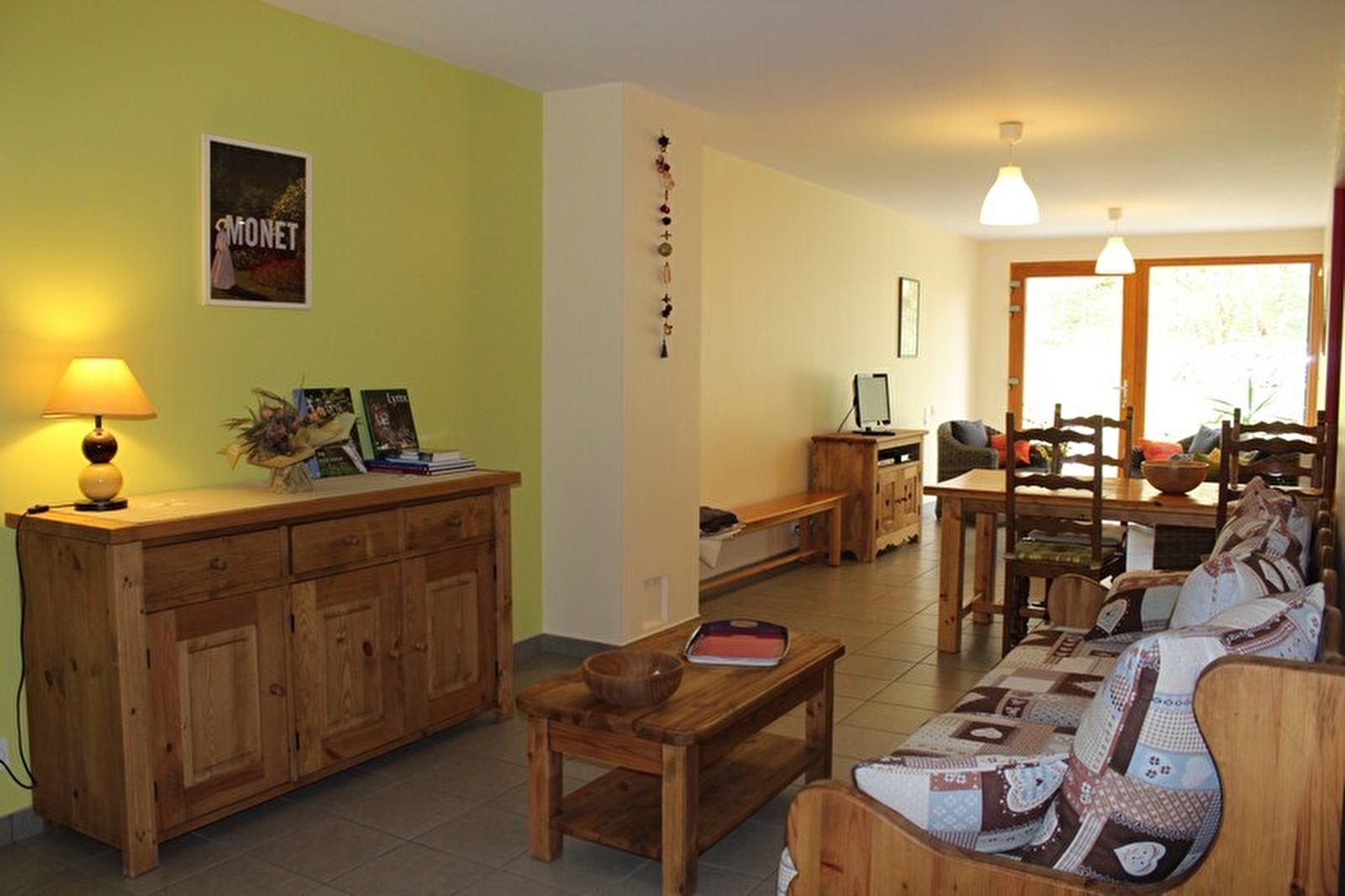 Gîte mitoyen des propriétaires, situé à proximité du site des 4 lacs et des cascades du Hérisson. Au rez de chaussée: hall d'entrée, lave-linge, wc indépendants. A l'étage : vaste pièce à vivre comprenant une cuisine entièrement équipée et 3 espaces détente avec canapés (dont un convertible 140cm), tv écran plat, TNT, lecteur DVD, accès internet, salle d'eau avec douche à l'italienne et wc. Chambre 1: 1 lit 2 places 160X200cm, CHAMBRE 2: 2 lit 1 place. Terrasse avec salon de jardin, barbecue. Grand terrain attenant non clos. Draps fournis. Équipement bébé à disposition. Possibilité 2 personnes suppl (contacter le propriétaire).