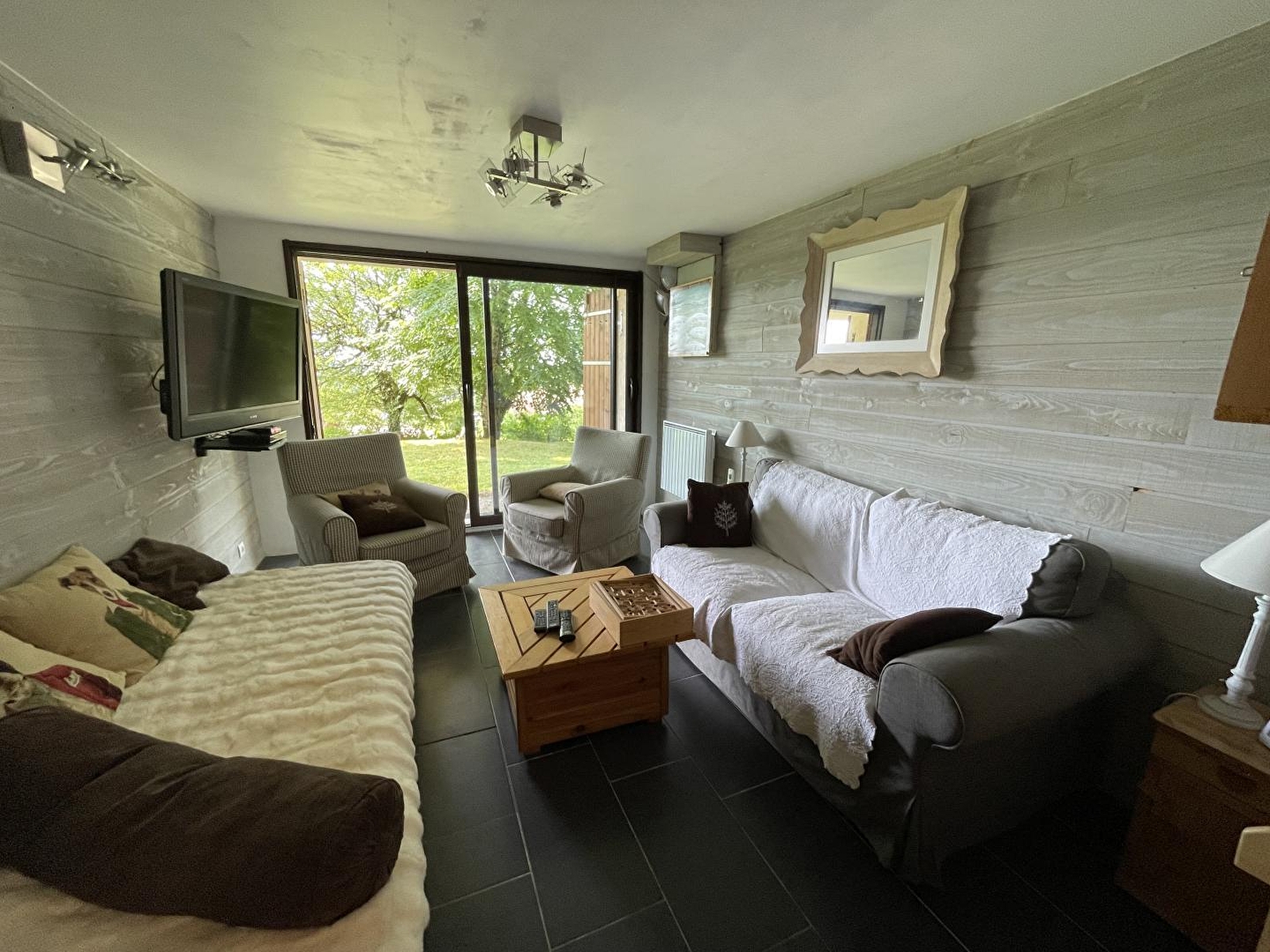 Chalet indépendant. Au 1er étage : coin-cuisine, séjour, salon, TV LCD avec lecteur DVD, chaine hifi, poêle à bois, salle de bains, WC indépendant. ch1: 1 lit 2 pl,ch2: 2 lits superposés, ch3: 2 lits superposés. A 2eme étage: ch4: 1 lit 2 pl et TV LCD, salle d'eau, WC indépendant, salon. Au sous-sol: Salon avec baies donnant accès direct au jardin, salle de bains, WC séparé. Terrain attenant non clos, balcon, salon de jardin, barbecue. Internet + WIFI: 10€ pour le séjour. Chauffage électrique et bois. Parking privé au niveau de la route à 50m (abri couvert), accès au gîte à pied depuis le parking. Gîte surélevé avec vue surplombante. Système d'alarme et coffre.