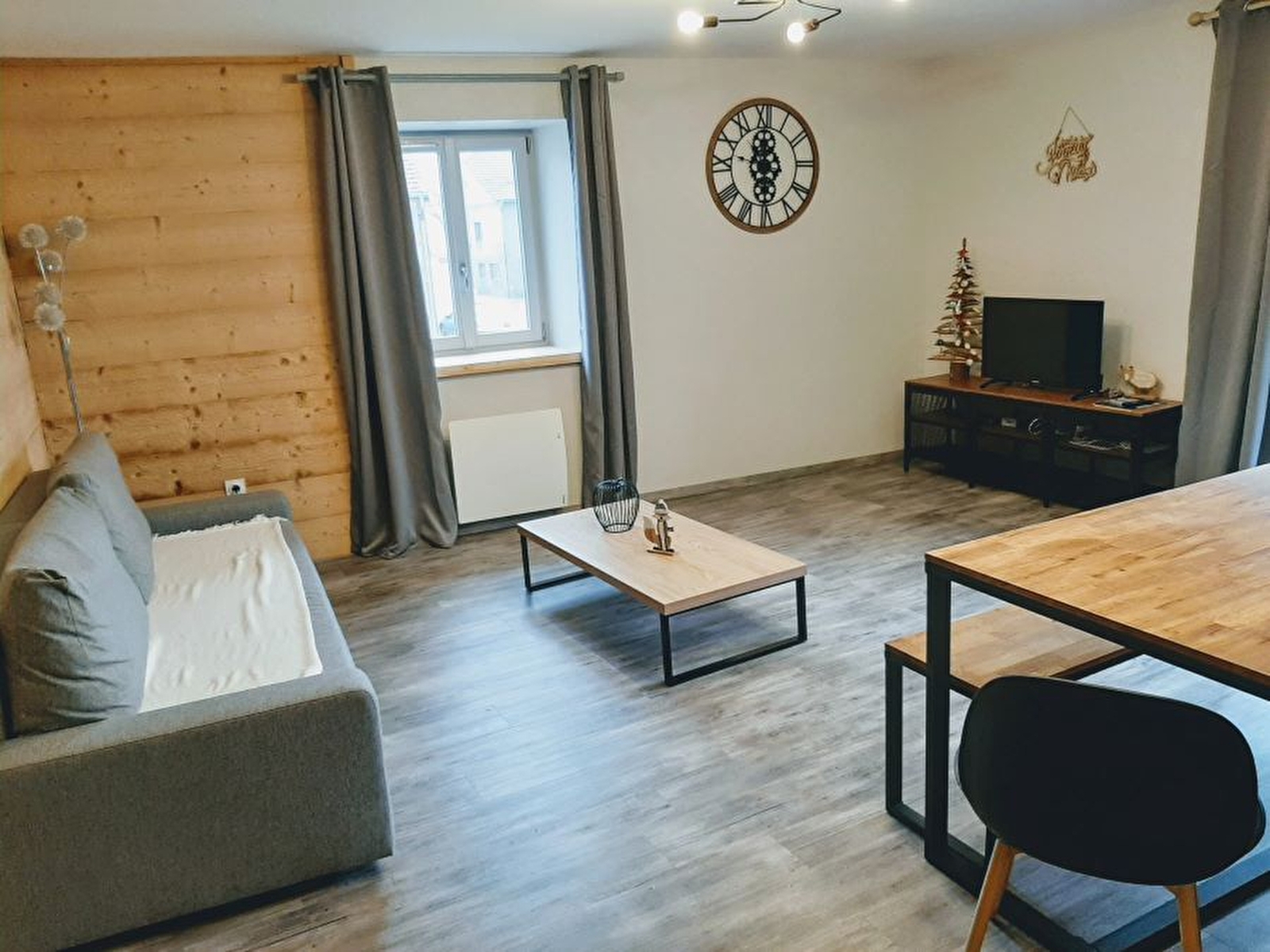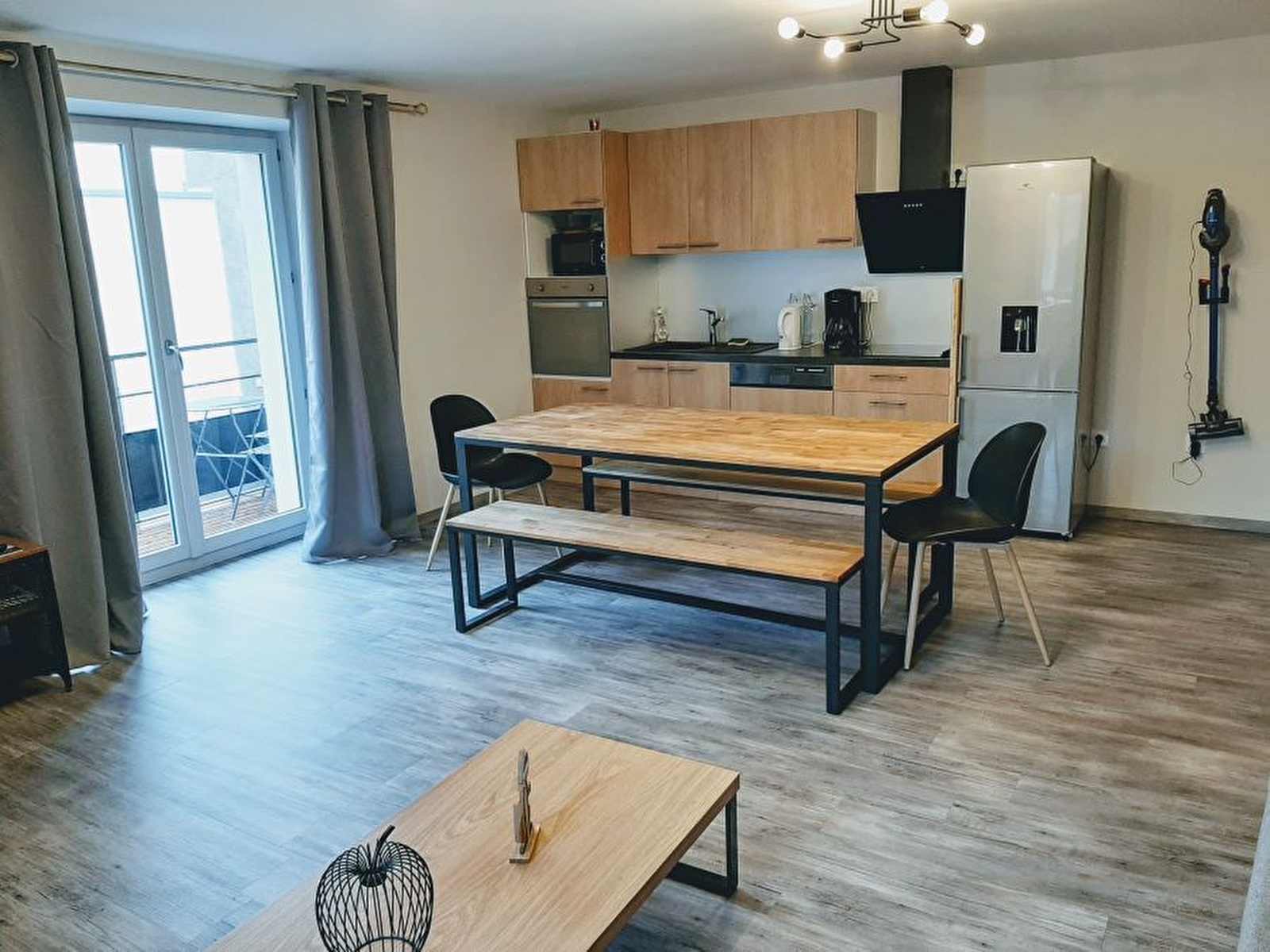 Bienvenue au Ptit Chazal! Cet appartement situé au 1er étage d'une maison entièrement rénovée saura vous séduire par son ambiance cosy et scandinave.Il se compose d'une pièce de vie avec salon et cuisine toute équipée, de 3 chambres : l'une avec 2 lits simples et les 2 autres avec 2 lits en 160, d'une salle d'eau avec douche à l'italienne, d'un WC séparé et d'un balcon. Un espace détente avec sauna et jacuzzi vous permettra de vous prélasser Coté extérieur : terrain de pétanque, salon de jardin et barbecue. Possibilité d'accueillir 2 personnes supplémentaires sur demande auprès des propriétaires (couchage en canapé convertible dans le salon) Note : à côté se trouve un gîte en location pour 2 personnes (espace détente dédié aux 2 gîtes)
