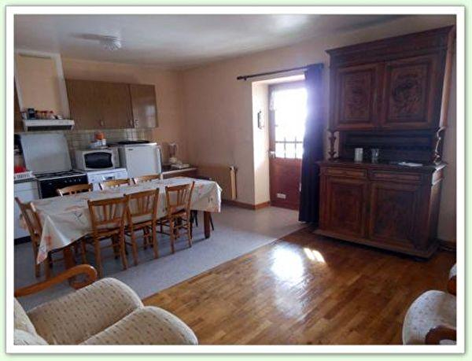 Le gîte « Séran » est un appartement de 65 m² pour 5 à 7 personnes, au 1er étage, accès par un escalier et balcon bois, 1 cuisine équipée, 1 salon avec 1 canapé convertible clic-clac, 1 salle d’eau avec douche, lavabo, toilettes; 1 chambre avec 1 lit 140, 1 chambre avec 2 lits de 90 superposés et 1 lits de 90.