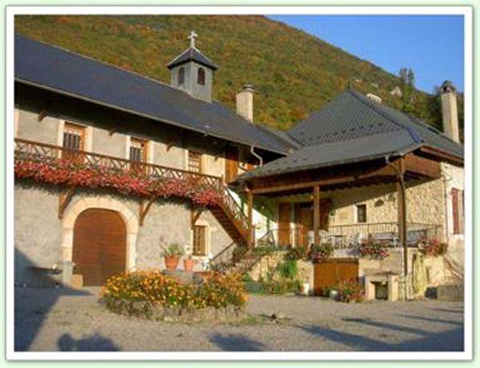 La Lavanche est une ancienne demeure monastique du 17ème siècle au centre d'un domaine de 13 hectares de prés et forêts, haut lieu de l'ancien vignoble des chartreux d'Arvières, situé à une altitude de 400m au pied du Grand Colombier, point culminant à 1531m.