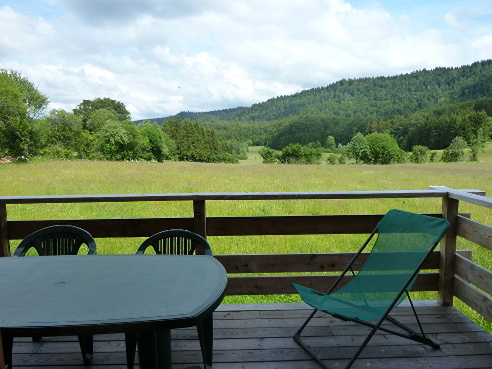 Chalet indépendant situé au coeur du Haut Jura, au pied des pistes de ski de fond et à deux pas de la cité médiévale de Nozeroy. Au rez-de-chaussée: vaste pièce à vivre composée d'une cuisine toute équipée, d'une salle à manger et d'un coin salon avec poêle à bois. Accès direct sur la grande terrasse offrant une magnifique vue sur la nature environnante. Ch1: 1 lit 2 pl, salle d'eau. A l'étage: ch2: 1 lit 2 pl, et mezzanine avec 4 lits 1 pl. Cour et jardin privés non clos, salon de jardin, barbecue. Sur demande: chaise bébé. Une caution de 350€ sera demandée dont 150€ pour le ménage.