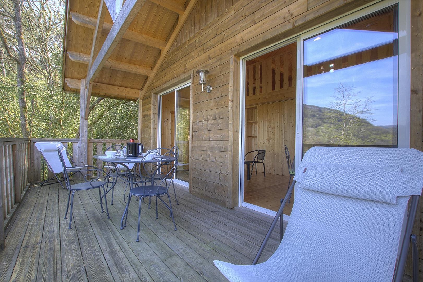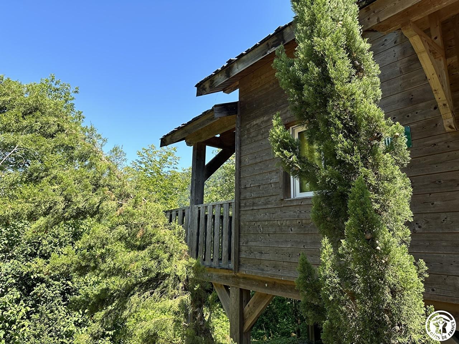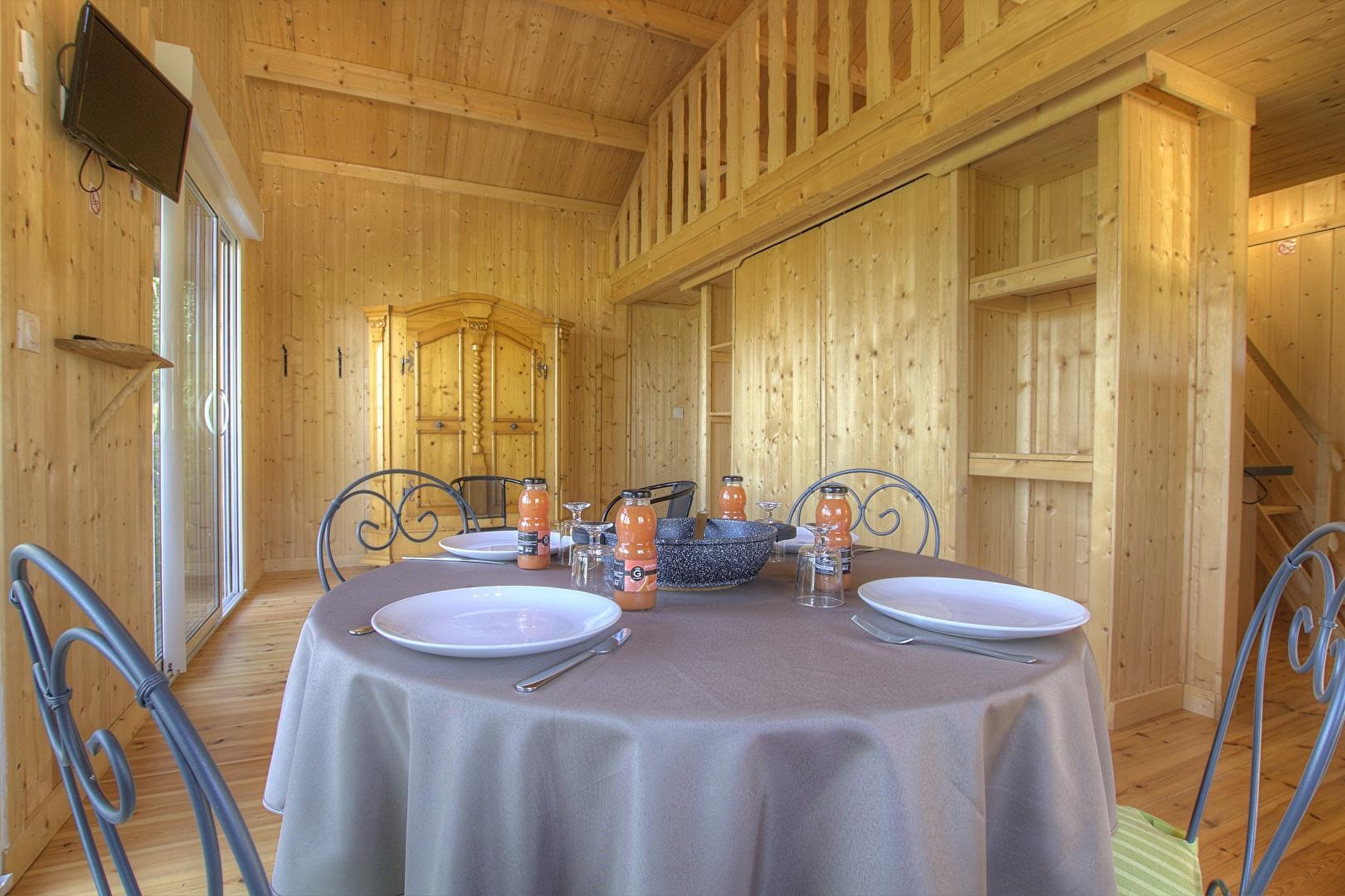 L'accès se fait directement sur la grande pièce de vie, les 2 grandes baies vitrées la prolongent sur la terrasse rectangulaire de 17 m² avec vue plongeante sur la Rivière d'Ain. Aux beaux jours, la terrasse vous permettra de profiter du soleil en après-midi et une partie de la soirée. La pièce de vie principale à l'ambiance vert printemps est aménagé d'un espace repas "ambiance jardin" et, le soir, se transforme en pièce à sommeil avec son couchage pour deux personnes (lit en 150 cm) intégré dans un rangement/placard mural. La mezzanine, ouverte, composée de deux lits 90 cm dont l'accès se fait par un escalier "étroit" donne également sur la pièce de vie. Son accès cocooning permet une véritable intimité. A l'écart de la pièce de vie, au pied de l'escalier de la mezzanine, se trouve une kitchenette pratique tout confort avec 2 plaques vitro céramique, un petit frigo avec espace congélateur et le micro-onde. L'accès à la salle d'eau se fait de la pièce de vie. Un kit avec les produits de " base " vous est remis à votre arrivée. Le Betet également fait partie d'un site " nature " comprenant au total 7 cabanes et lodges complètement intégrées dans cette forêt de buis, niché sur les hauteurs de Serrières sur Ain, en aplomb de la rivière d'Ain. Chaque cabane à sa propre identité et est construite sur piloti à 2m du sol, les accès et terrasse sont entièrement sécurisés. Site d'exception, dans les gorges de l'Ain, permettant la pratique du canoë, aviron ou simplement baignade. En hauteur sur les falaises, possibilité de randonner, avec GR et PR.