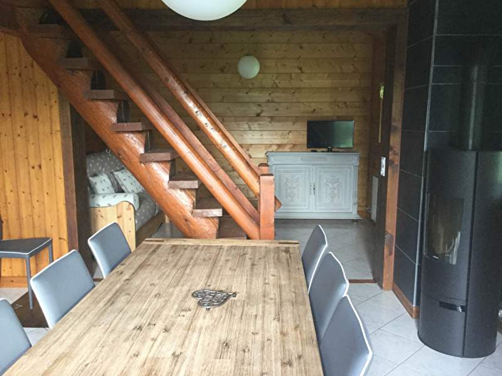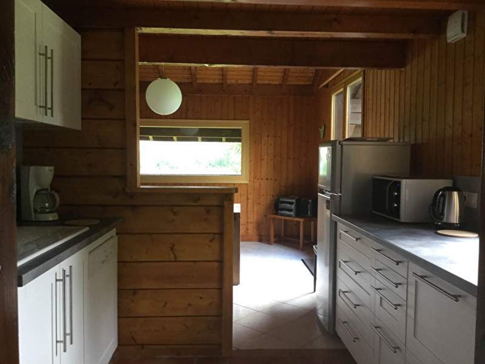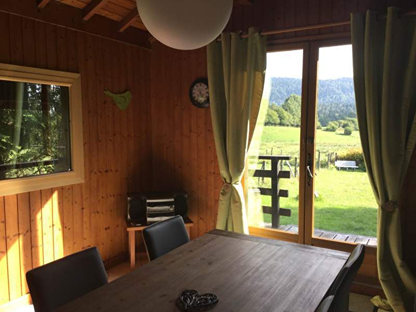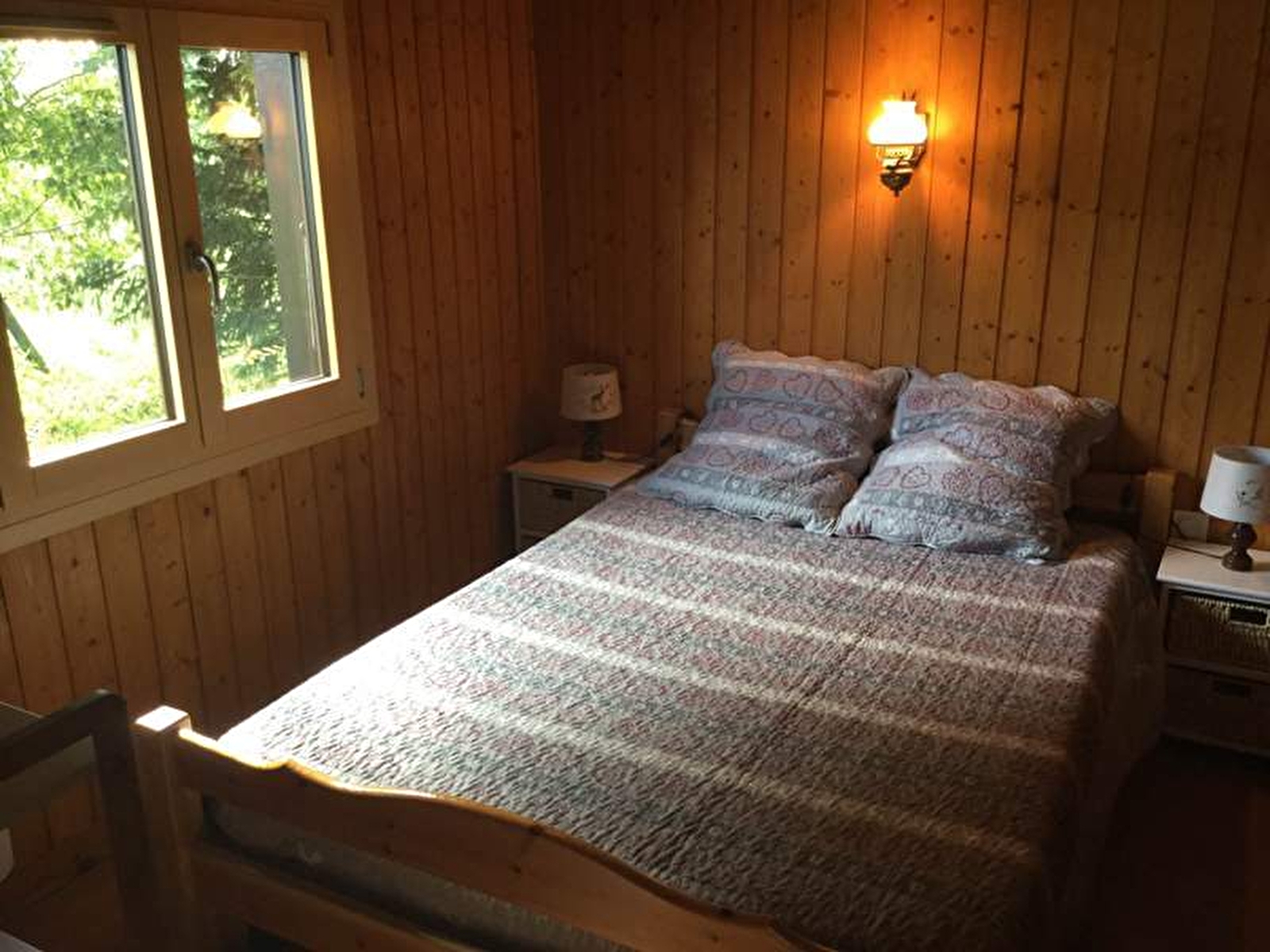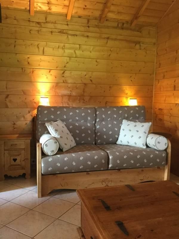 Chalet bois pour 2 à 4 personnes situé dans un village calme. Hall d'entrée, espace cuisine toute équipée, salle à manger (poele à bois) et coin salon avec canapé convertible (couchages possibles : literie rapido), salle d'eau (douche et wc), mezzanine 2 couchages en lit gigogne (80x190). Une chambre avec 1 lit en 140x190. Le gîte est de plain pied sauf la mezzanine (escalier raide). La cuisine et la chambre sont accessibles par 3 marches. Terrain attenant non clos en pleine nature avec une belle vue sur la campagne. Salon de jardin et barbecue.