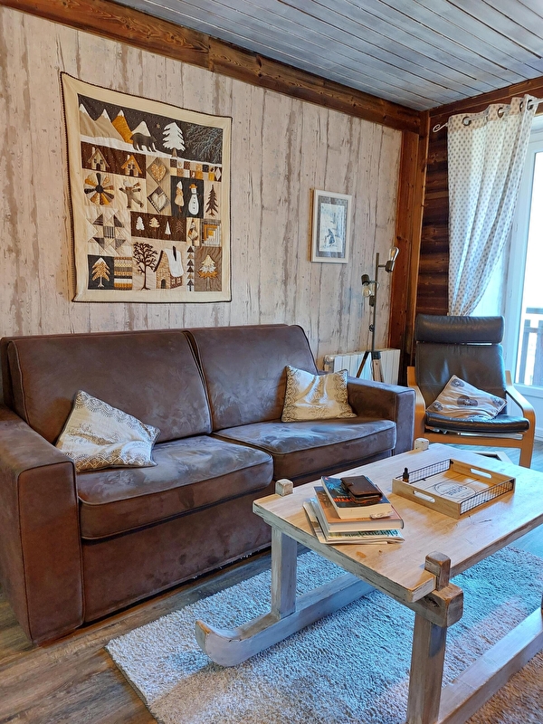Comprenant un séjour, cuisine équipée, deux chambres, et un grand balcon, cet appartement bénéficie d'une exposition nord-ouest-est. Il est situé à 750m du village et des pistes, au calme.