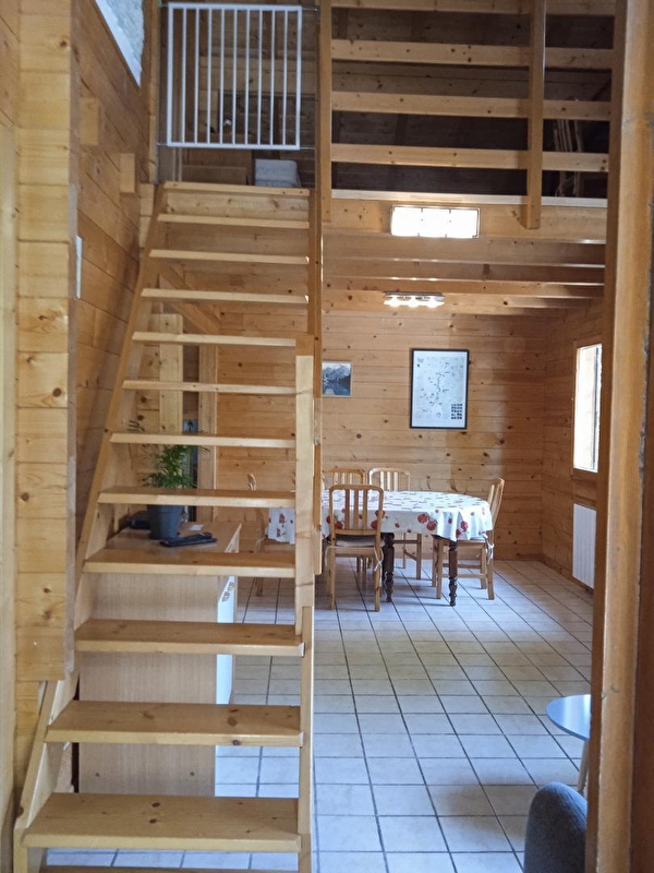 Ce chalet situé au calme se compose d'une pièce de vie avec cuisine équipée, coin salle à manger et espace salon, d'une chambre avec un lit double (140*190),d'une salle d'eau avec douche et d'un WC indépendant. A l'étage, mezzanine avec coin bureau et une chambre avec 2 lits simples. Pour votre plus grand confort, les lits seront faits à votre arrivée, les serviettes sont fournies et le ménage est inclus. Côté extérieur, vous pourrez profiter d'une terrasse avec salon de jardin ,barbecue et transats. Garage pour vélos et motos. Idéalement situé au cœur de la région des lacs, à proximité du lac de Vouglans, vous pourrez également faire de nombreuses randonnées dans les environs.