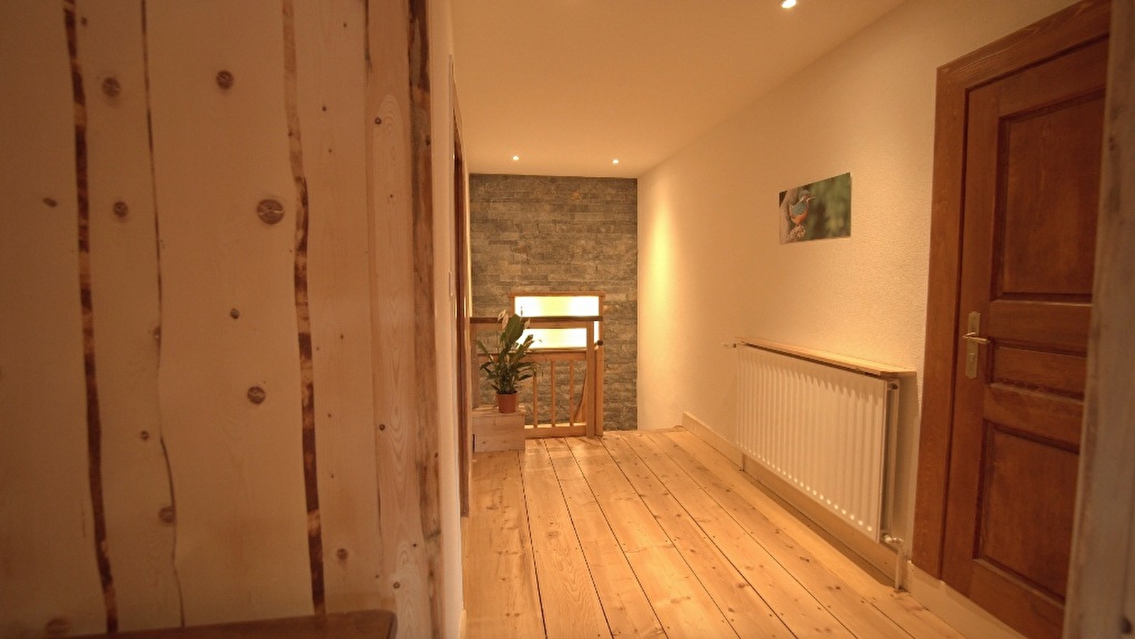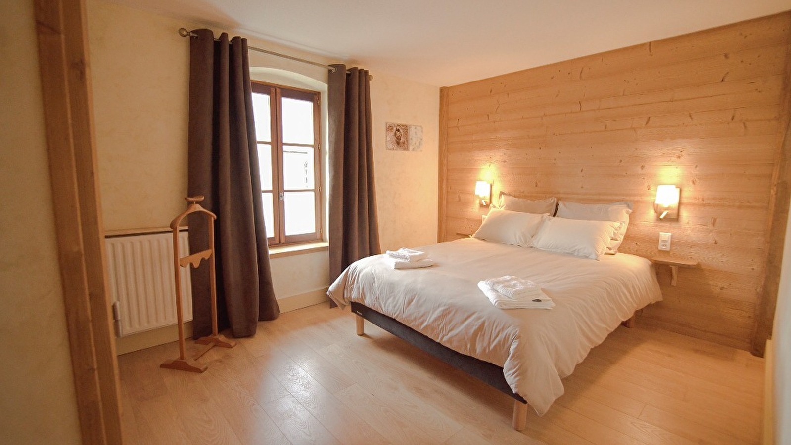Aménagé dans une ancienne auberge, ce gîte (mitoyen) au propriétaire, situé au cœur du village de La Pesse, vous fera découvrir l'esprit de l'habitat Haut-Jurassien conjuguant, bois et pierre calcaire de construction. Au rez-de-chaussée, le hall d'entrée et le couloir vous conduiront à la cuisine entièrement équipée, où vous découvrirez par une trappe vitrée la cave souterraine de l'auberge. La salle à manger, superbe pièce lumineuse de 35 m² avec un espace salon avec écran plat et un bar jurassien. Une pièce détente et salle de jeux avec écran TV qui donne accès à une véranda aménagé coin presse et magazines avec accès sur terrasse et jardin privatif de 3000 m² de la maison. Par l'escalier central d'époque, vous accédez à l'étage pour découvrir 4 chambres uniques spacieuses et lumineuses et aménagées avec des essences de bois jurassiennes différentes. 1 suite parentale avec lit double 160 cm et offrant une salle de bain totalement équipée avec baignoire, et WC 1 chambre avec lit double 160 cm avec espace bureau pour le travail ou la lecture. 1 chambre équipée avec un lit 130 cm et un lit 90 cm. 1 dernière chambre avec un lit 90 cm. Au niveau sanitaire : Au RDC, un WC indépendant et une salle de bain avec vasque et grande douche à l'italienne A l'étage : une salle de bain avec vasque, baignoire et WC Un espace sauna et détente pour 4 personnes vous permettra de vous détendre après une ballade en raquette ou une randonnée. Côté extérieur, la maison bénéficie d'un parc privé entièrement fermé de 3000 m² avec terrasse aménagée et salon de jardin, jardins fleurs et potagers à disposition (L’aménagement d’un espace jeu enfant et d’un terrain de boules sont prévus pour 2023) Vous disposez également d'un garage fermé pour votre véhicule et d'une place de parking privé extérieure. Pour votre plus grand confort, les lits seront faits à votre arrivée et les serviettes de toilettes fournies. Forfait ménage obligatoire : 100€