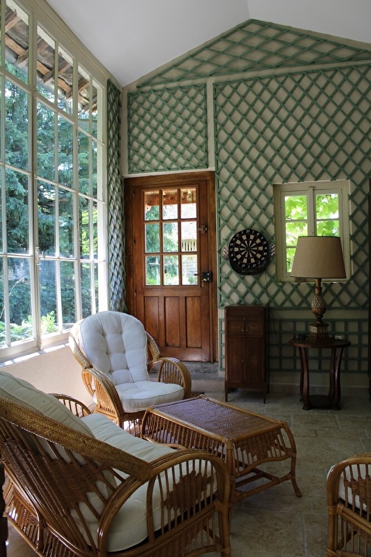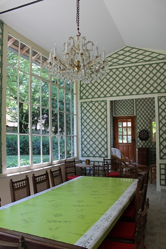 En plein cœur du célèbre vignoble jurassien , à quelques kilomètres de Château-Chalon et Baume-les-Messieurs classés parmi les plus beaux villages de France et à proximité de la ville thermale de Lons le Saunier, venez découvrir la magnifique demeure en pierre qui se cache derrière le grand portail, et son merveilleux parc arboré, idéal pour se ressourcer loin du quotidien dans un cadre idyllique et verdoyant. Dans la première maison pouvant accueillir 8 personnes, au rez-de-chaussée, vous trouverez une cuisine entièrement équipée, un salon avec télévision écran plat, et une grande véranda aménagée en salle à manger offrant une splendide vue sur le parc. Au 1er étage, deux chambres pour deux personnes, buanderie avec lave-linge et sèche-linge, une salle d'eau avec douche à hydrothérapie et wc. Au 2e étage, mezzanine avec bibliothèque et salon de lecture, deux chambres pour deux personnes et une salle d'eau avec douche à hydrothérapie et wc. Espace extérieur attenant et privatifs équipé de salons de jardin, transats et barbecue. Accès à l'espace relaxation composé d'un sauna et d'une piscine couverte avec un coin jacuzzi (5mx3m et profondeur 1m50). Dans la seconde maison pour 4 personnes, de plain pied, pièce à vivre avec cuisine entièrement équipée, un salon avec télévision écran plat. Une première chambre avec un lit de 160cm (ou deux lits de 80cm). Salle d'eau avec cabine de douche. Wc indépendants. Une seconde chambre avec un lit de 140cm. A l'extérieur, terrasse attenante et privative sous la glycine, équipée de salon de jardin. Pour votre confort, les draps et linges de toilette sont fournis. Vous l'aurez compris, ce petit paradis est à découvrir absolument !