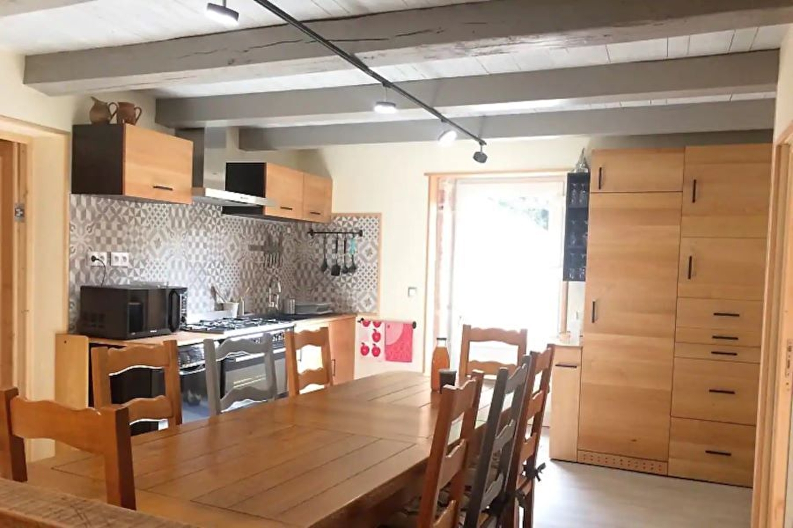 Cette maison mitoyenne en pierres du 18ème entièrement restaurée se compose d'une pièce de vie avec cuisine toute équipée, d'un salon propice à la détente et à la lecture, de 2 chambres avec chacune leur sanitaire et équipées d'une TV et d'une connexion internet en wi-fi ou par câble ethernet. La chambre "grand-duc" est constituée de 2 espaces : au rez-de-chaussée, un lit de 140x190, une salle d'eau et un wc séparé , et à l'étage (accès par escalier assez raide) 2 lits 90x190. La chambre "chamois" possède un lit "queen size" 160X200, avec salle d'eau, WC séparé et un coin TV équipé d'un canapé-lit pouvant accueillir 1 ou 2 personnes supplémentaires (sur demande auprès des propriétaires) Chaque chambre donne sur l'espace commun cuisine/salle à manger, et possède un accès direct par le balcon. Elles peuvent être fermées à clé. L'ambiance bois règne partout, avec les poutres apparentes, les lambris et le mobilier. Dans les chambres, des meubles anciens que les propriétaires ont pris plaisir à restaurer. Dans la cuisine, des équipements modernes et fonctionnels, mais avec des façades personnalisées et donc uniques. Pour votre plus grand confort, les lits seront faits à votre arrivée et les linges de toilettes sont fournis. Côté extérieur, vous pourrez profiter d'une terrasse couverte avec salon de jardin et barbecue, buanderie avec lavabo, sèche-linge et lave-linge Idéalement situé pour découvrir les richesses naturelles et patrimoniales du Jura: sentiers, lacs et cascades, vignoble, sites historiques, forêts, villages.. Et même tenter une excursion jusqu'à la Bourgogne toute proche!