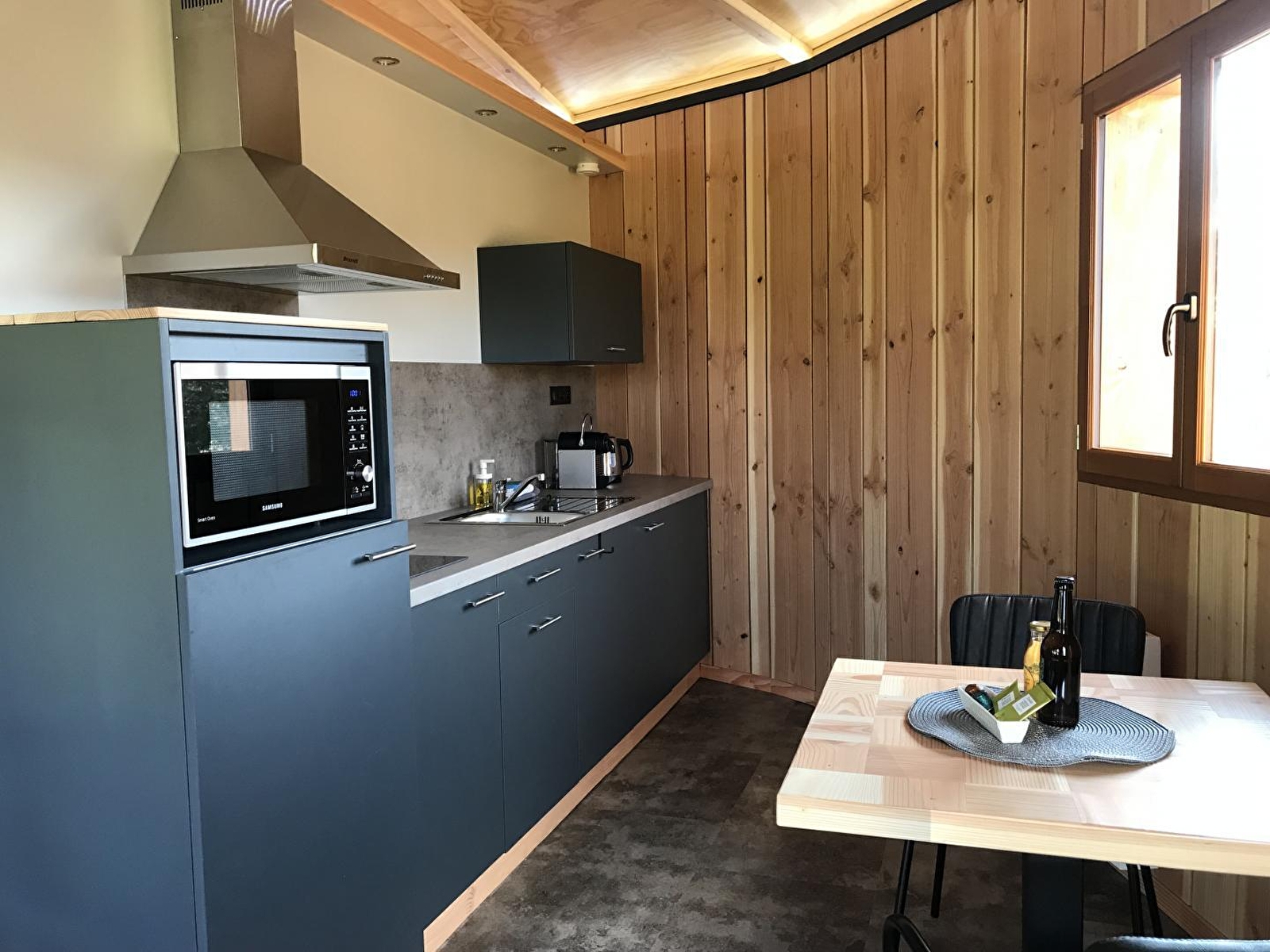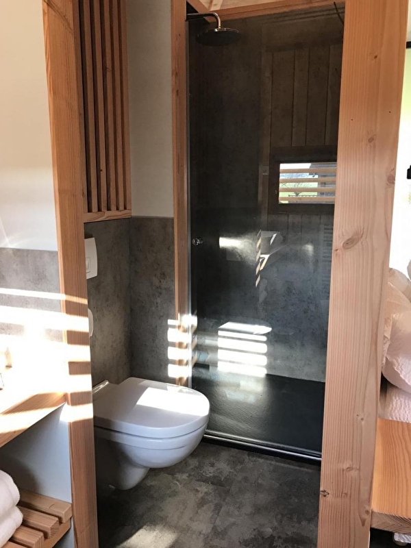 Véritable invitation au ressourcement, cette cabane insolite, écologique et authentique saura vous ravir. Entièrement conçu par le propriétaire dans le respect de l'environnement et Made in Jura, vous pourrez profiter d'un espace fonctionnel et chaleureux alliant luxe et simplicité. Idéale pour une escapade à deux au cœur de la nature, elle dispose d'une literie soignée, d'une salle de bain, d'une cuisine équipée, d'un coin salon avec cheminée décorative, lumineux grâce aux 3 baies vitrées, d'une terrasse privée sur pilotis avec un bain nordique (eau chauffée à 38°C en permanence). Pour votre plus grand confort, votre lit sera à fait à votre arrivée et les linges de toilettes sont fournis. Nathalie aura à cœur de vous faire découvrir les nombreuses activités à faire sur place ou à proximité, mais aussi une sélection de produits du terroir : possibilité de réserver vos box petit-déjeuner et repas directement auprès de votre hôte. N'attendez plus et venez découvrir les Cabio'Gites le temps d'une nuit, d'un week-end ou d'une semaine ! Un parking privé est à votre disposition. Cet hébergement n'est pas adapté aux enfants de moins de 10 ans