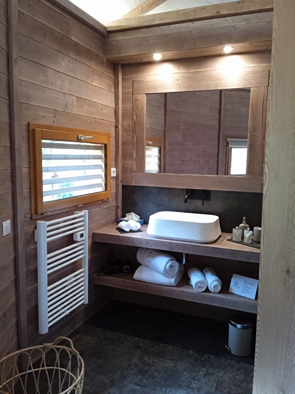 Véritable invitation au ressourcement, cette cabane insolite, écologique et authentique saura vous ravir. Entièrement conçu par le propriétaire dans le respect de l'environnement et Made in Jura, vous pourrez profiter d'un espace fonctionnel et chaleureux alliant luxe et simplicité. Idéale pour une escapade à deux au cœur de la nature, elle dispose d'une literie soignée, d'une salle de bain, d'une cuisine équipée, d'un coin salon avec cheminée décorative, lumineux grâce aux 3 baies vitrées, d'une terrasse privée sur pilotis avec un bain nordique (eau chauffée à 38°C en permanence). Pour votre plus grand confort, votre lit sera à fait à votre arrivée et les linges de toilettes sont fournis. Nathalie aura à cœur de vous faire découvrir les nombreuses activités à faire sur place ou à proximité, mais aussi une sélection de produits du terroir : possibilité de réserver vos box petit-déjeuner et repas directement auprès de votre hôte. N'attendez plus et venez découvrir les Cabio'Gites le temps d'une nuit, d'un week-end ou d'une semaine ! Un parking privé est à votre disposition. Cet hébergement n'est pas adapté aux enfants de moins de 10 ans