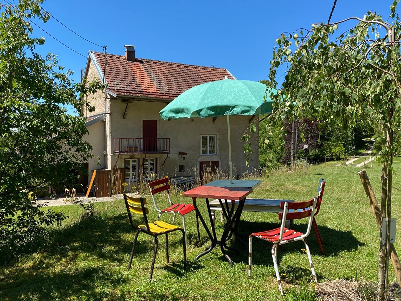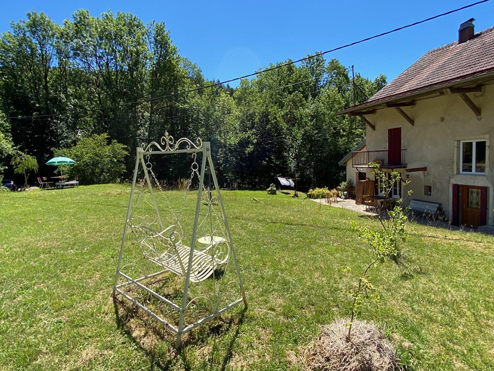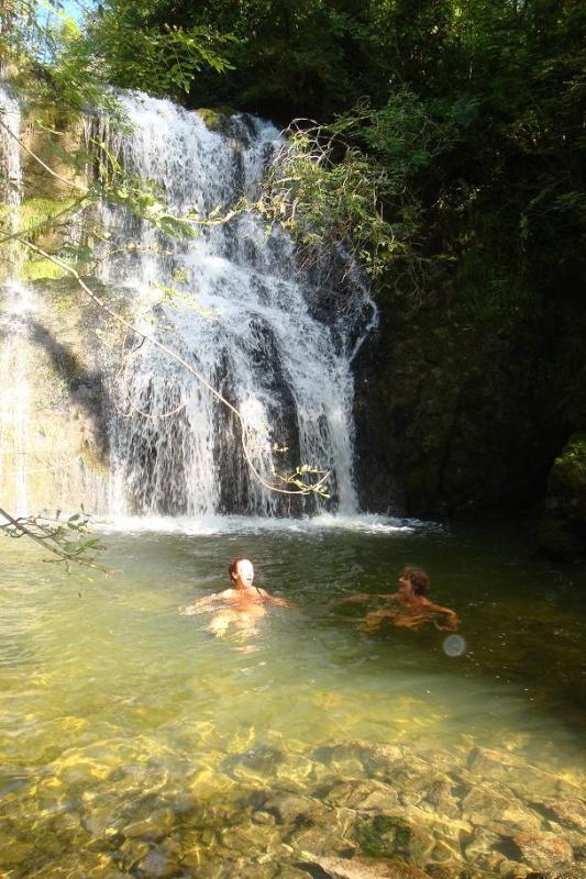 Dans une ancienne ferme-tournerie de 1889, grande maison indépendante de 12 couchages. Dominant la vallée à 750m d'altitude, elle est entourée de verdure sur un vaste terrain boisé non clos, bordé par la rivière et les cascades de l'Héria. -Au rez-de-chaussée : belle entrée, cuisine entièrement équipée, salle à manger, salon avec cheminée et de nombreux jeux de société. Grande salle de bain avec baignoire, lave-linge et sèche-linge. WC séparé. -Au 1er étage : 3 chambres, salle d'eau-WC et une grande mezzanine avec babyfoot et bibliothèque -Au 2éme étage : 2 chambres, une salle d'eau-WC -Garage attenant de plain-pied - Espace Parking. Pour l'extérieur, mobilier de jardin et barbecue. Plusieurs aménagements de détente avec une balancelle, des bancs, l'aire de jeux des enfants, les cascades de la rivière de l'Héria et la forêt. Internet si besoin : Bonne couverture Internet pour accès avec vos abonnements 4G/5G. Ni téléviseur ni radio mais le théâtre de la nature et le vol des oiseaux La maison a une nette préférence pour les non-fumeurs et préfère être consultée pour les animaux domestiques (nous devons penser aux personnes allergiques) COUCHAGES - pour 12 personnes + 1 bébé : • 3 lits doubles : deux lits de 140 x 190 + un lit de 140 x 200 (soit 3 chambres avec lit double) • 6 lits simples 90 x 190 (soit 1 chambre avec deux lits simples, et 1 chambre avec 4 lits simples) • 1 lit bébé Nous fournissons des couettes chaudes, couvertures, traversins, oreillers. Option "location de linge" possible au moment de la réservation. Le ménage est inclus ACTIVITÉS sur place : Balançoires, toboggan, cabane en bois, baignades dans la rivière et au pied des cascades Au départ de la maison : Balades en forêt, randonnées GR, circuits VTT Tout proche : l'Accropont de Villards-d'Héria, le Lac d'Antre pour la pêche et le Lac de Vouglans avec ses eaux turquoises, sa via ferrata, ses plages et ses loisirs nautiques.