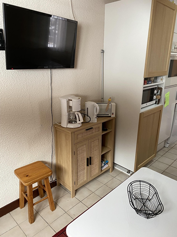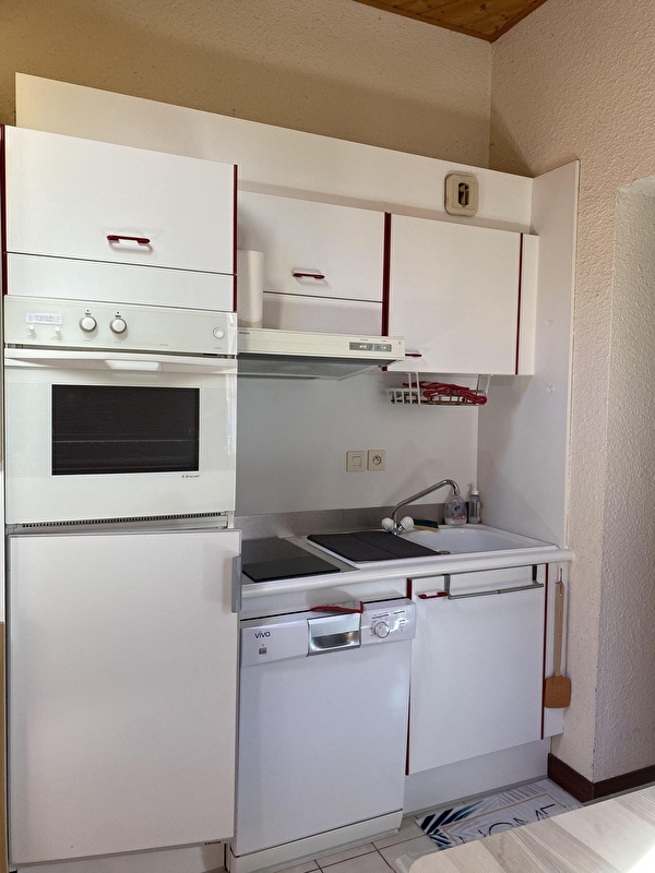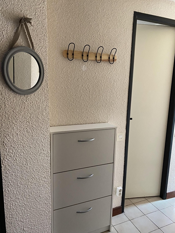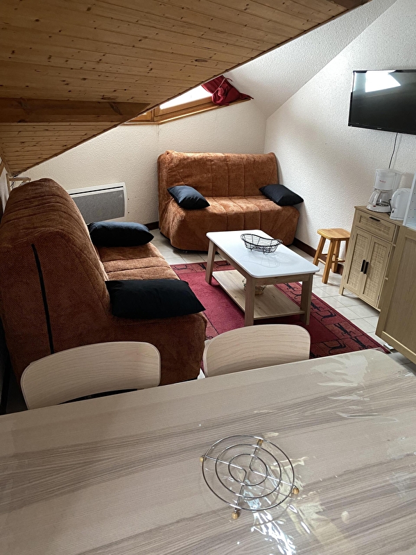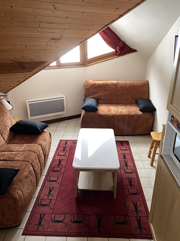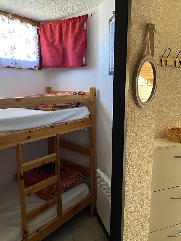 Il se compose d’une entrée avec un petit couloir desservant, une petite chambre avec fenêtre avec 2 lits superposés, toilettes séparés, une salle d’eau et une pièce de vie comprenant un coin cuisine, 2 banquettes de couchage style BZ ; une grande armoire.