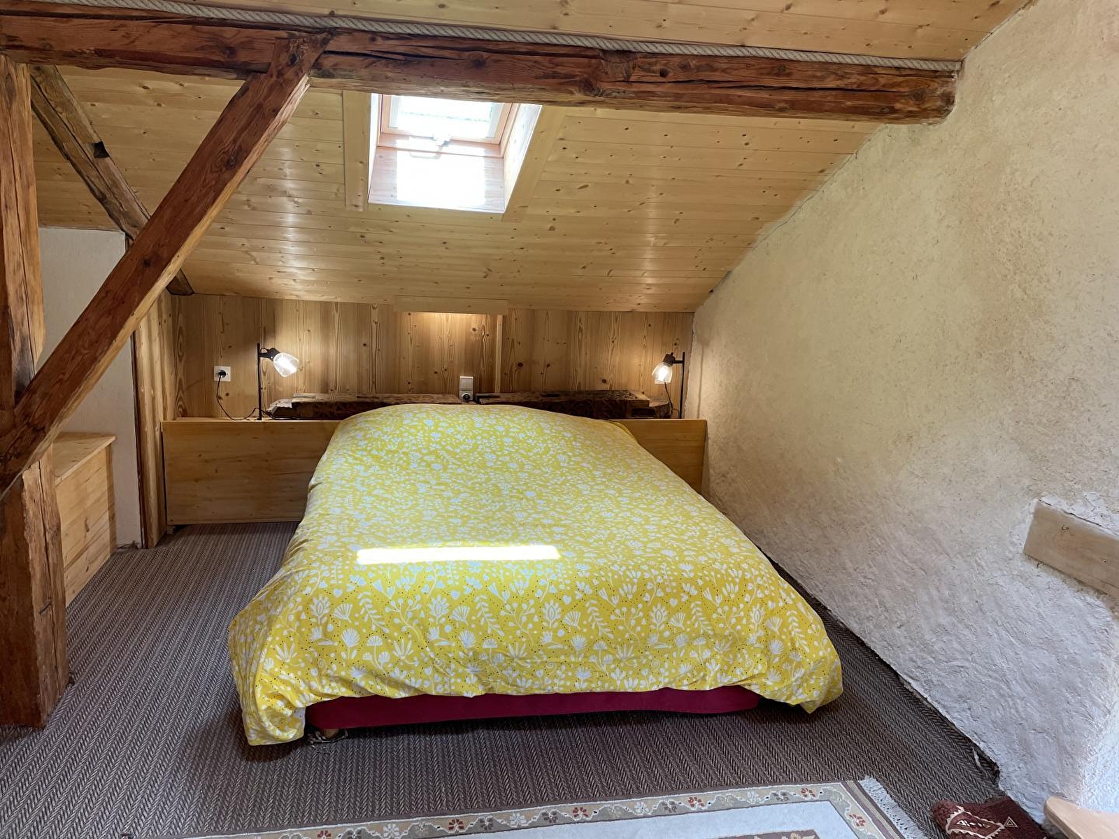 En pleine nature et à l'orée de la forêt où apparaissent de nombreux animaux (écureuils, chevreuils, différentes espèces d'oiseaux), logement situé à l'étage et mitoyen à la maison des propriétaires. Accès indépendant. Séjour-salon très lumineux (TV + radio). Cuisine intégrée toute équipée. chambre : 1 lit 2 places + 2 lits superposés, salle d'eau avec douche et sauna, WC séparés. A l'étage : une chambre avec 1 lit 2 places (160) + 1 lit de 90cm et un lit bébé. Chambre 3: 1 lit de 140x190. Lits faits à l'arrivée. Salle d'eau avec wc. Chauffage au sol (gaz et solaire). Terrasse au rez de chaussée, salon de jardin, barbecue, portique et jeux d'enfants. Gîte non fumeurs. 1 personne supplémentaire possible sur demande auprès des propriétaires. Draps, linge de toilettes et de maison fournis ainsi que les produits d'entretien. Possibilité de recharger les véhicules électriques. Rideaux occultants dans les chambres. Parking privé dans la propriété. Note : un forfait ménage obligatoire s’appliquera automatiquement au moment de la réservation.