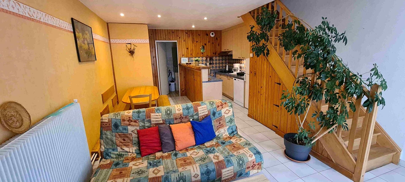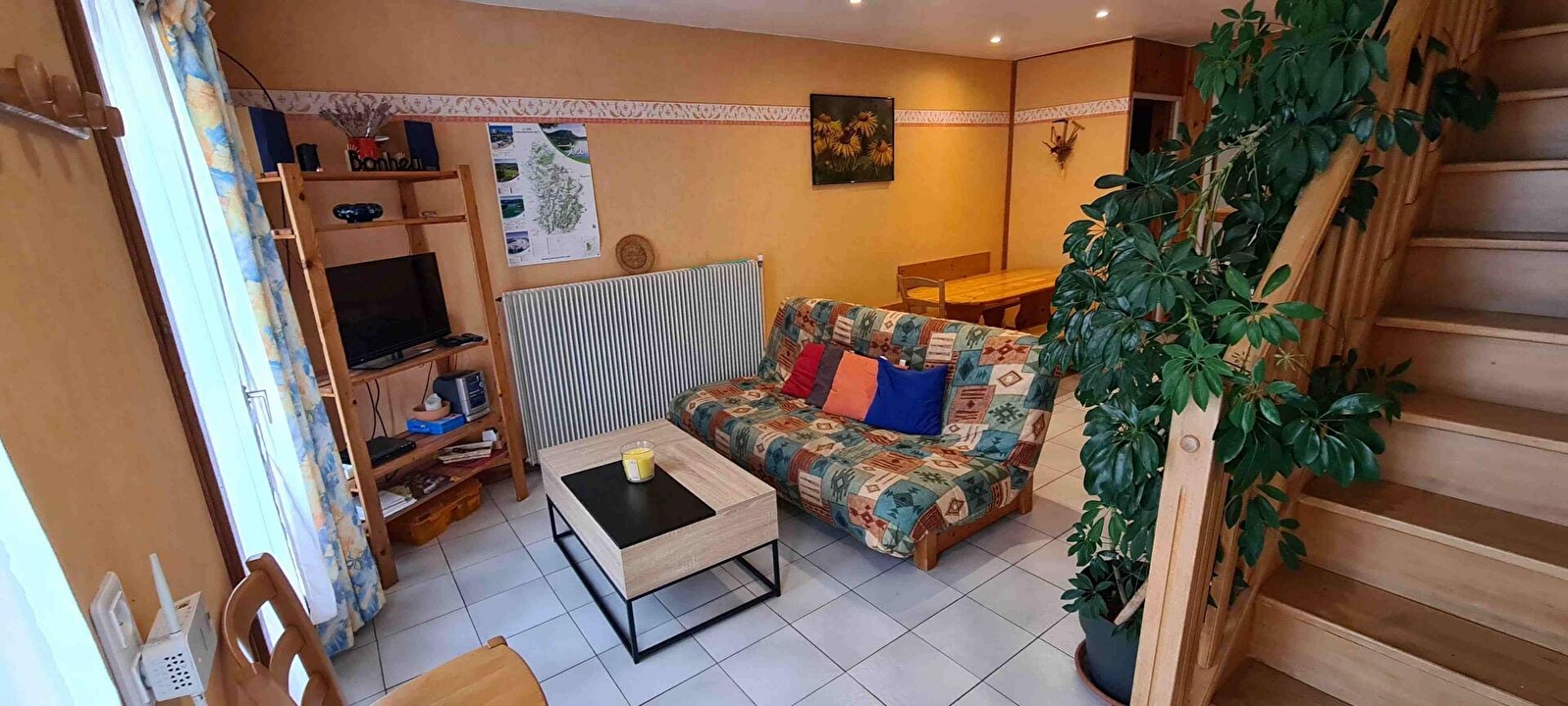 A deux pas des cascades du Hérisson et du lac de Bonlieu, ce gîte sur 2 niveaux se situe dans une belle maison où se trouve également 2 autres gîtes. Au rez de chaussée : cuisine intégrée équipée, séjour et salon avec un canapé convertible, salle d'eau avec douche et 1 wc indépendant. A l'étage, 1 chambre avec un lit de 160 et 1 chambre avec un 1 lit de 140 et un lit de 90, un wc avec vasque se trouve également à cet étage. Terrain clos à disposition, salon de jardin, barbecue. Chauffage central. Toutes charges comprises. Local commun aux 3 gîtes avec jeux de société, livres et sèche-linge.