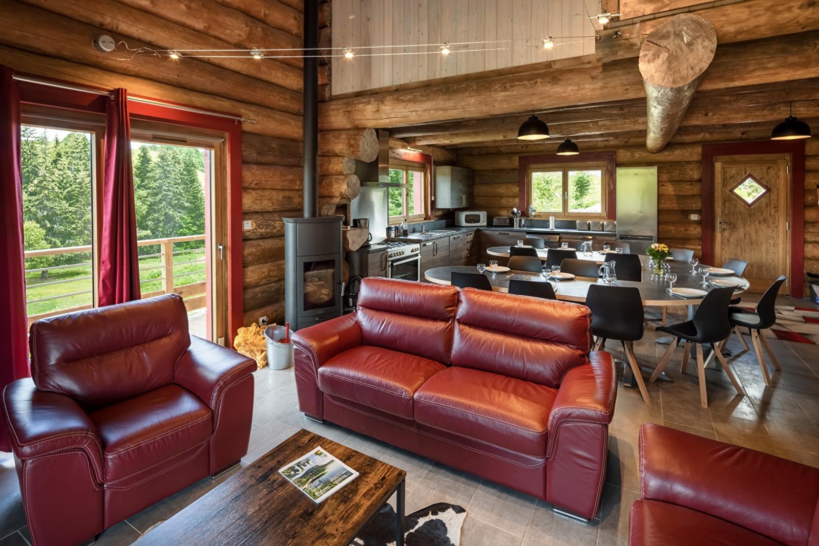 Ce chalet en rondin se compose d'une grande pièce à vivre avec cuisine intégrée toute équipée, d'un salon avec TV et poêle à bois, d'une chambre avec 1 lit en 140 et 2 lits simples, d'une grande salle d'eau avec douche, d'un WC indépendant. A l'étage : 2 chambres avec chacune 1 lit en 140 et un lit simple, une chambre avec un lit en 140 et 2 lits simples, une grande salle d'eau avec douche et un WC indépendant. Côté extérieur une grande terrasse de 25 m² vous permettra d'admirer la nature environnante. Elle est agrémentée d'un salon de jardin. Les pistes de ski de fond, raquettes et chiens de traîneaux passent au pied du gîte et les commerces se trouvent à une dizaine de minutes à pied.