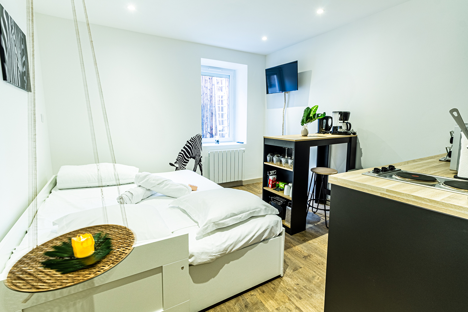 Que vous soyez en voyage d’affaires, en escapade romantique ou simplement à la recherche d’un lieu reposant au style affirmé, la Lodge Zèbre vous promet un séjour inoubliable, entre confort et originalité.