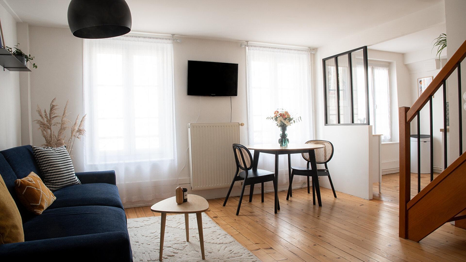 Envie d'une petite escapade au cœur du Jura ? Idéalement situé, en plein cœur du centre-ville, cet appartement au 1er étage et en duplex saura vous séduire avec sa décoration cosy. Il se compose d'une pièce de vie avec cuisine toute équipée et d'un salon avec canapé et TV. A l'étage, la salle d'eau avec WC et la chambre avec un lit double (160x200). Pour votre plus grand confort, le lit sera fait à votre arrivée et le linge de toilette est fourni.Côté extérieur, une terrasse commune est accessible au 3ème étage. Logis non-fumeur. Parking gratuit à proximité. Ainsi vous découvrirez la ville sans prendre votre voiture et accéderez aux nombreux commerces et restaurants à proximité, et pourquoi pas vous laisser tenter par un après-midi au centre thermal ou à flâner sous les arcades... Ce gîte, c'est aussi la proximité du patrimoine jurassien à deux pas : son vignoble, sa fruitière à Comté de Lavigny (6 km) ainsi que ses balades et randonnées pédestres qui sauront ravir les plus exigeants. Plus loin, ce sont Château-Chalon et son vin jaune (15 km), Baume-les-Messieurs (17 km) classé l'un des plus beaux villages de France, où vous pourrez visiter l'une des grottes les plus spectaculaires d'Europe en y admirant les cascades des tufs. Le lac de Chalain et ses eaux cristallines (30 km) ou les différentes reculées du département pourraient terminer de satisfaire les plus baroudeurs ! Vous souhaitez découvrir les environs autrement ? Une balade en 2CV (en supplément) sera possible en fonction des disponibilités et si les conditions météo le permettent. Forfait ménage obligatoire : 30 euros pour les séjours de 2 et 3 nuits et 60 euros à partir de 4 nuits - à régler sur place auprès des propriétaires.