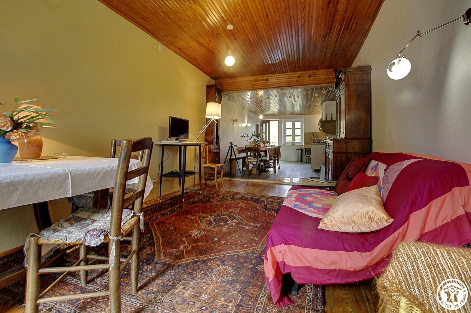 Au cœur du hameau de Soiriat, le Gîte Maison Joly est une maison en pierre typique du Revermont, avec son escalier et sa voute de grange. Il peut accueillir jusqu'à 5 personnes. Depuis la cour (avec parking) et par l'escalier en pierre, vous accéderez à une grande pièce de vie traversante composée d'une cuisine fonctionnelle, de la salle à manger et d'un espace détente orienté à l'est. Depuis ce salon et par un petit escalier, vous profiterez du jardin et d'une terrasse équipée de mobilier. Dans le prolongement de la pièce de vie, un couloir dessert la salle d'eau avec WC et des rangements, et, une marche plus bas, la chambre comprend 2 lits simples pouvant se réunir à la demande (80x200). Par un escalier de bois, vous est proposée une seconde chambre équipée d'un lit double (140x200) et d'un lit simple (90x190). Les deux chambres sont à l'est, du côté jardin. Au rez-de-chaussée, une grange accueille des vélos et un atelier. L'ancienne écurie attenante a été transformée pour vous proposer un WC indépendant et une salle d'eau avec une buanderie et la chaudière, puis conduit au jardin. Le plus de ce Gîte : les lits sont faits à votre arrivée, le linge de toilette est fourni et les charges sont incluses. De la maison, mitoyenne, dans ce petit village, partent des sentiers de randonnée et des parcours en vélo. L'île Chambod avec sa baignade surveillée est située à seulement à 4 km.