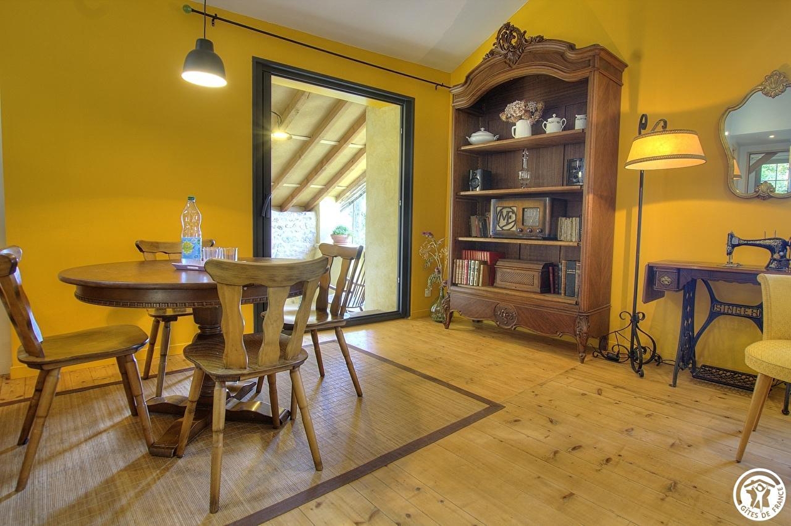 1 étage plus haut depuis la cuisine : chambre composée d'un lit en 140 et un lit enfant en 80X170. Deux dressings de chaque côté du lit. Voyagez l'esprit léger : les lits sont faits à votre arrivée. Le linge de maison et de toilette fournis. Les charges ? Comme le sourire des propriétaires, fournies avec. Pour le forfait ménage, un forfait de 50€ vous sera demandé. Parking privé. Chauffage électrique et bois. Gîte mitoyen à la résidence des propriétaires. Jardin commun à disposition.