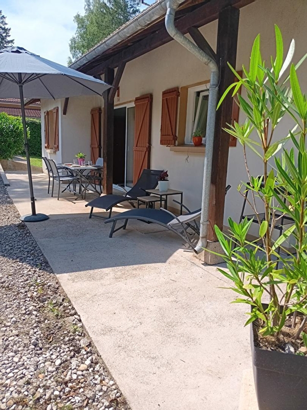 Idéalement située, à 150 mètres du lac de Chalain, cette maison de plain-pied entièrement rénovée se compose d'une pièce de vie avec cuisine toute équipée, espace repas et coin salon avec TV, d'une chambre avec 1 lit double (160*200), d'une chambre avec 2 lits simples (80*200), d'une salle d'eau avec douche et d'un WC indépendant. Côté extérieur, vous pourrez profiter d'une terrasse aménagée avec salon de jardin, transats et barbecue et d'un terrain entièrement clos. Vous pourrez rejoindre rapidement les sites touristiques tels que les cascades du Hérisson, le belvédère des 4 lacs ainsi que Chateau-Chalon et Baume les Messieurs, classés parmi les plus beaux villages de France